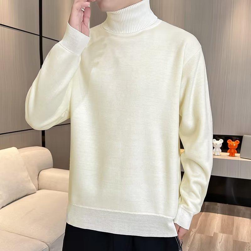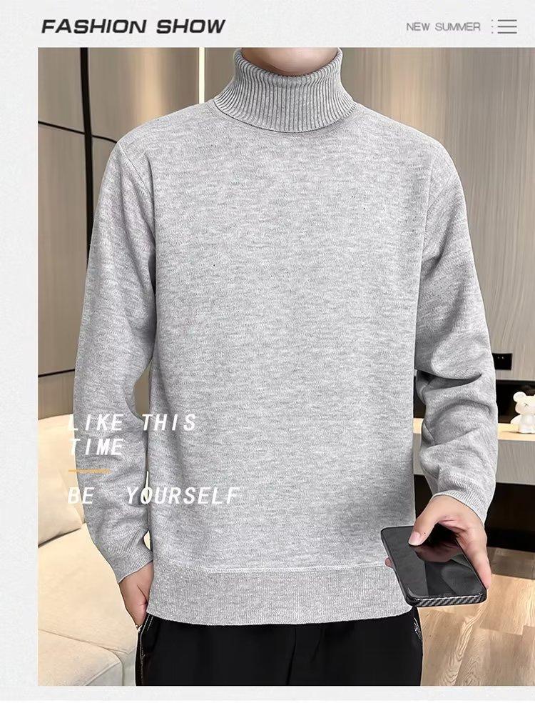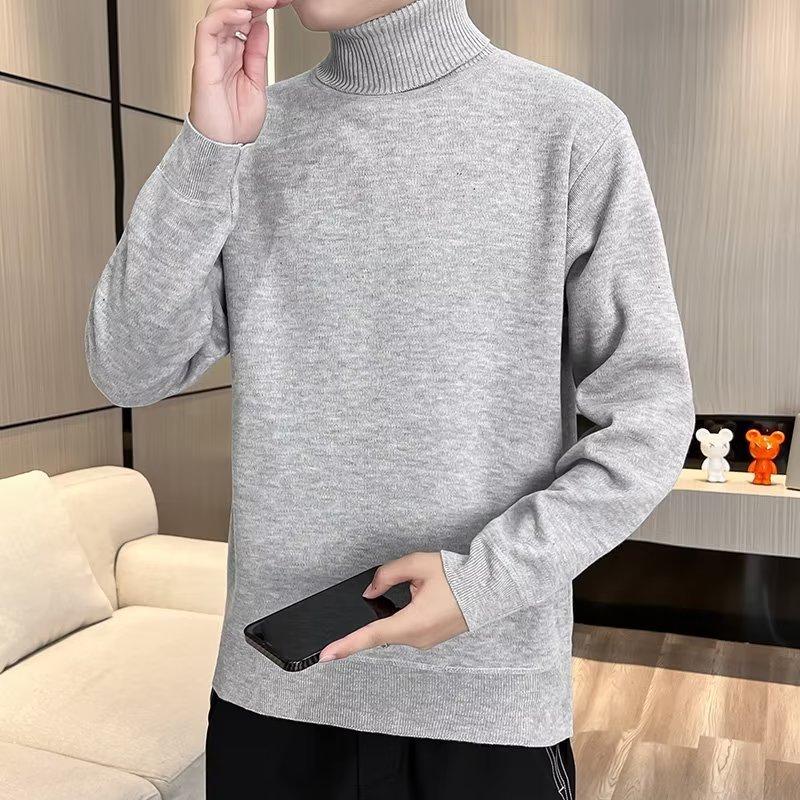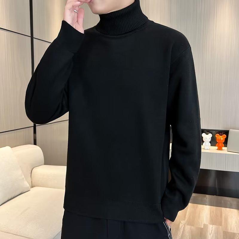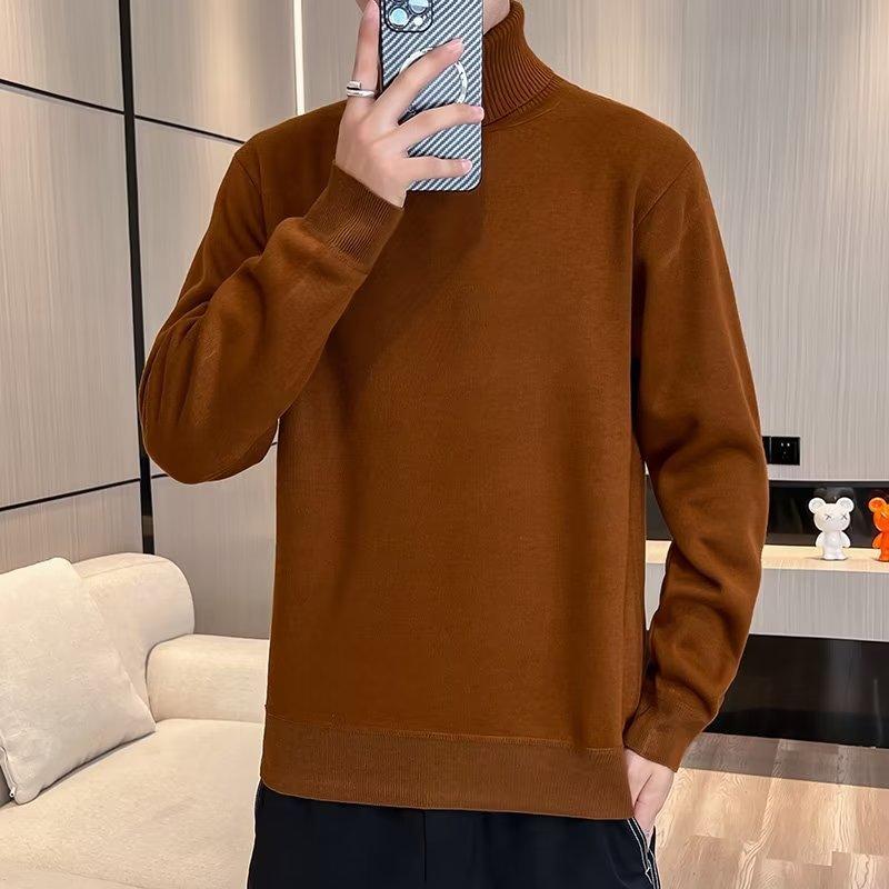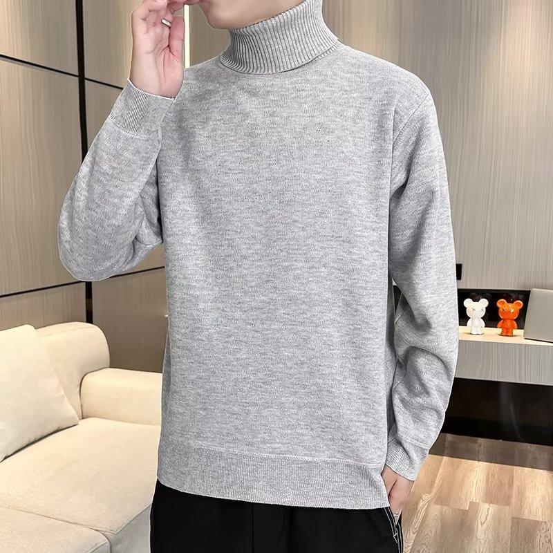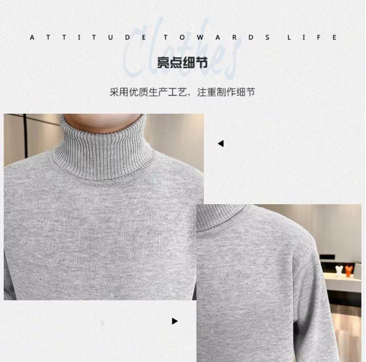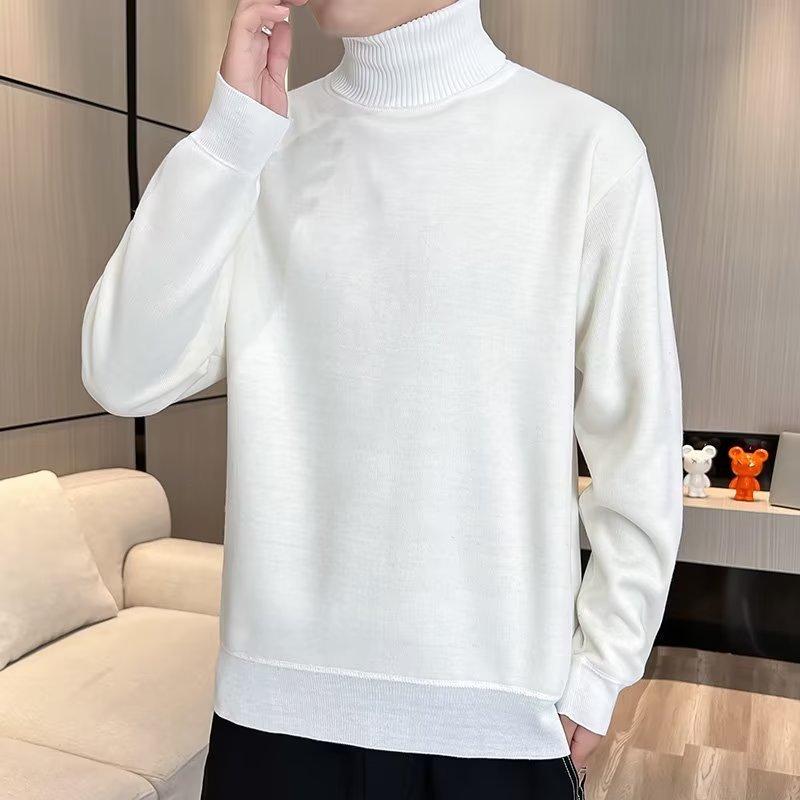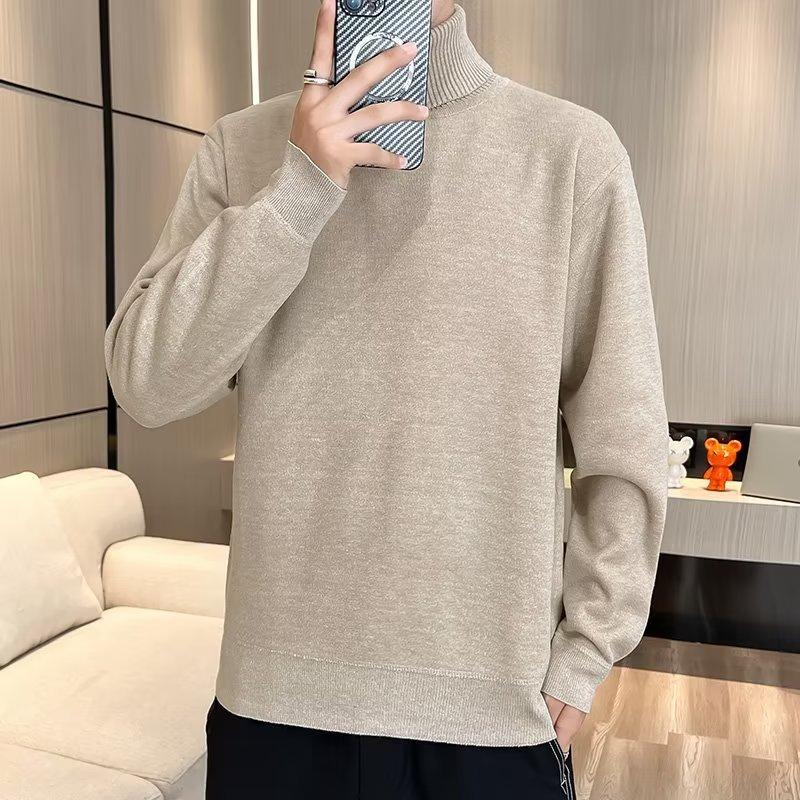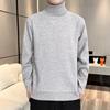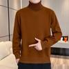 Suéter masculino meia gola alta outono e inverno cor sólida quente malha camisa de fundo versátil suéter de gola média moda masculina da moda
