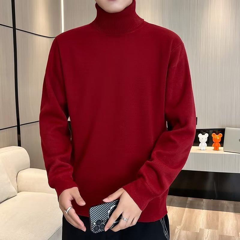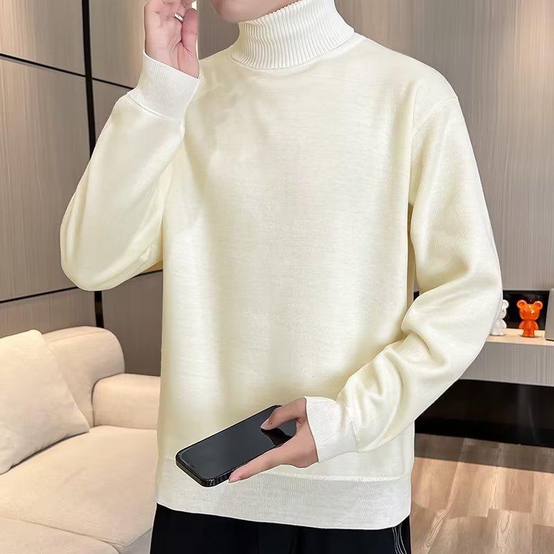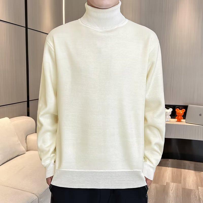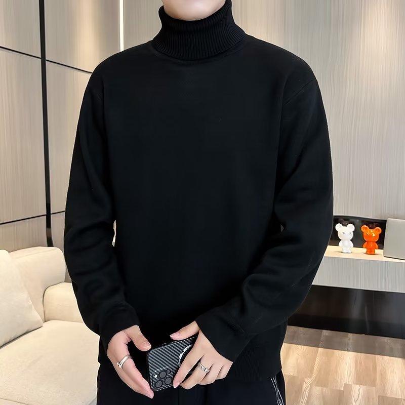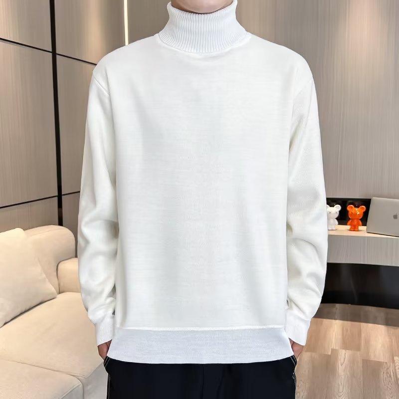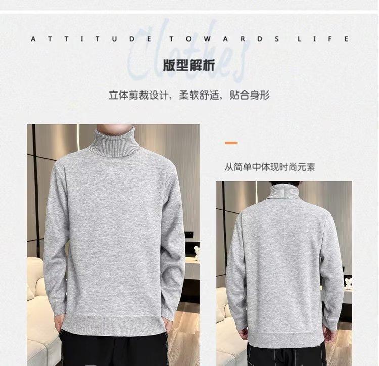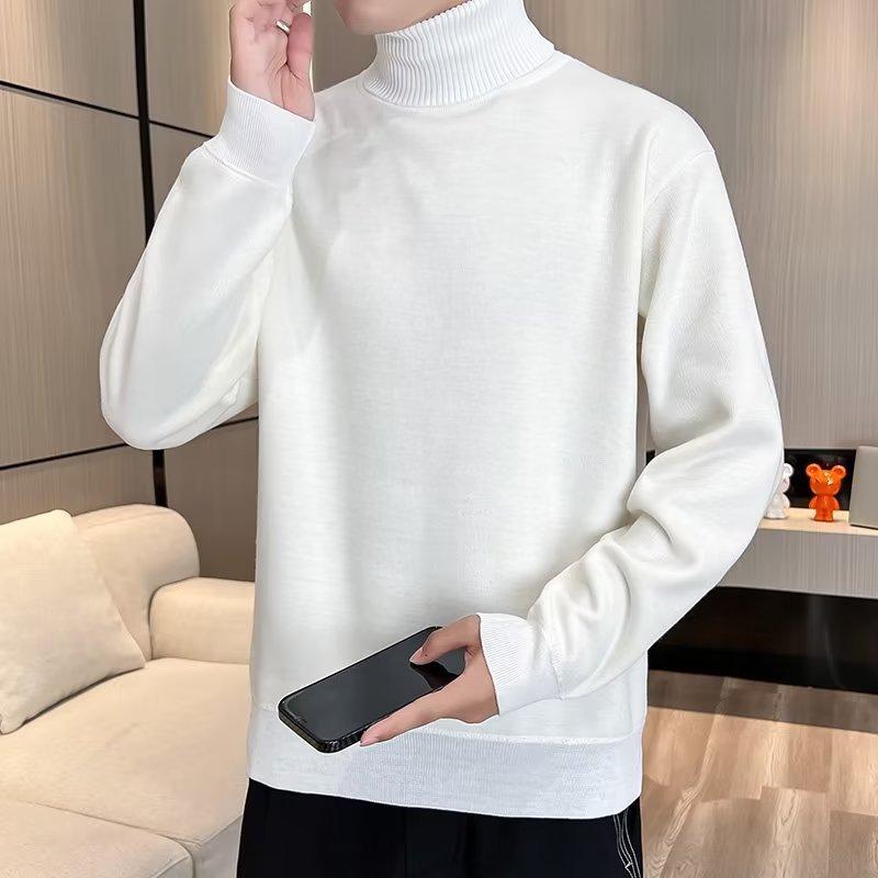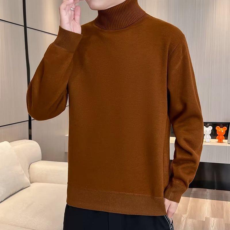 Suéter masculino meia gola alta outono e inverno cor sólida quente malha camisa de fundo versátil suéter de gola média moda masculina da moda