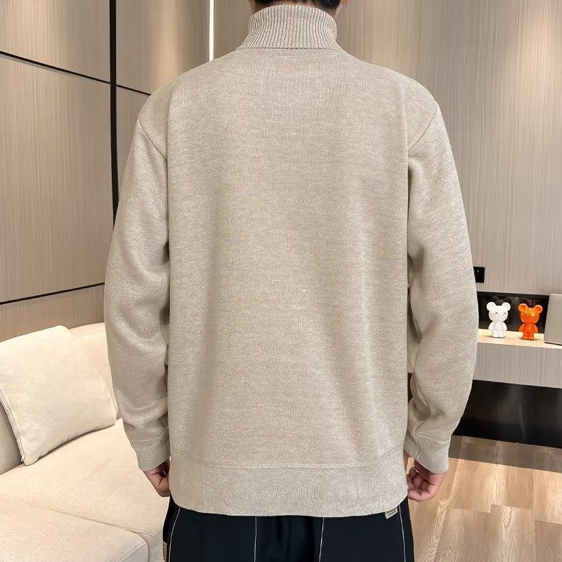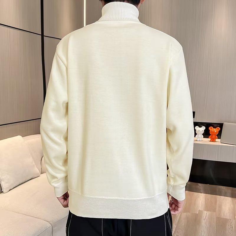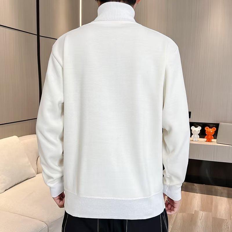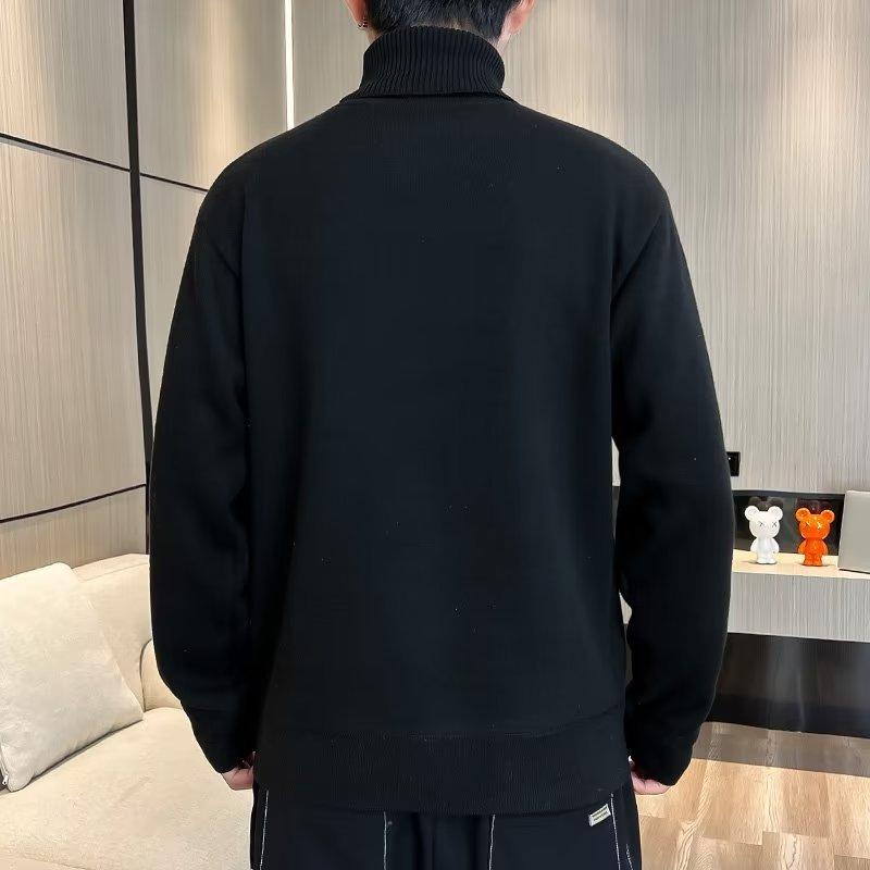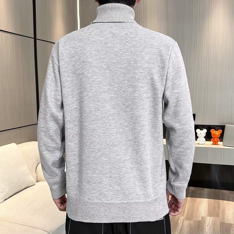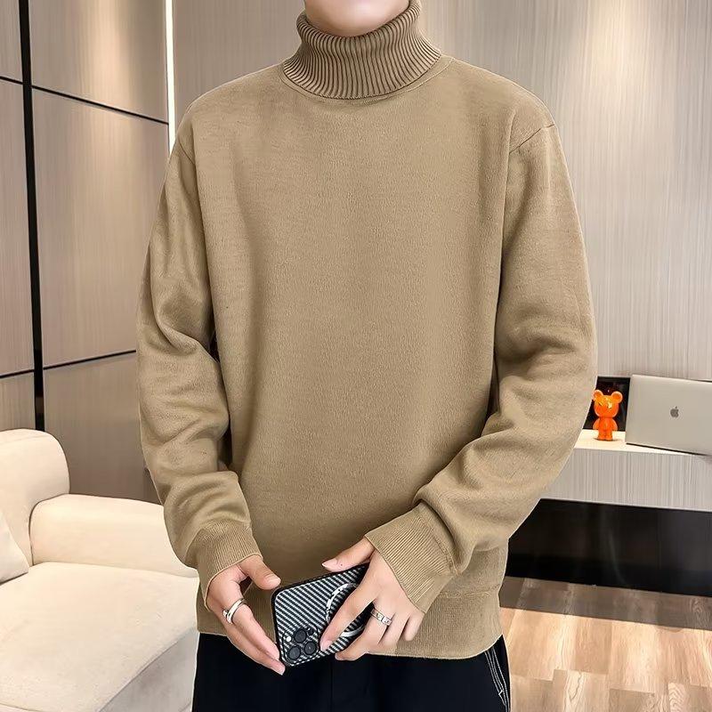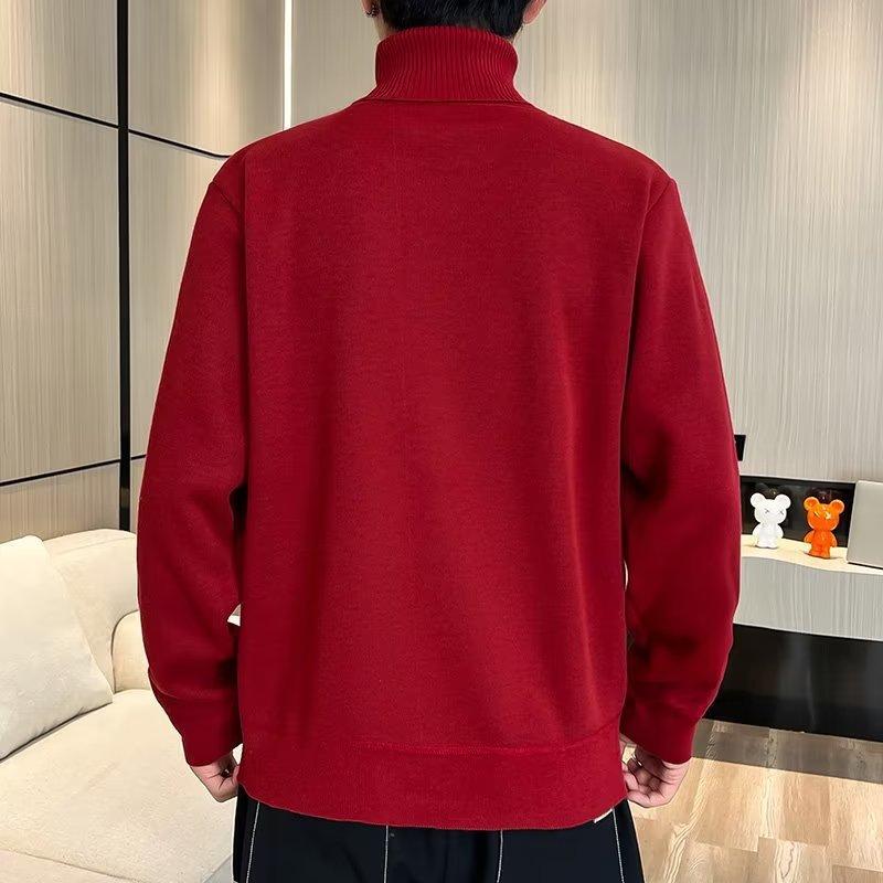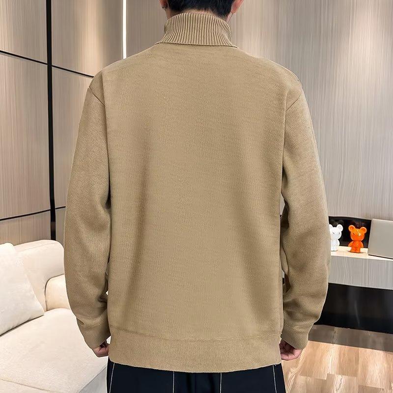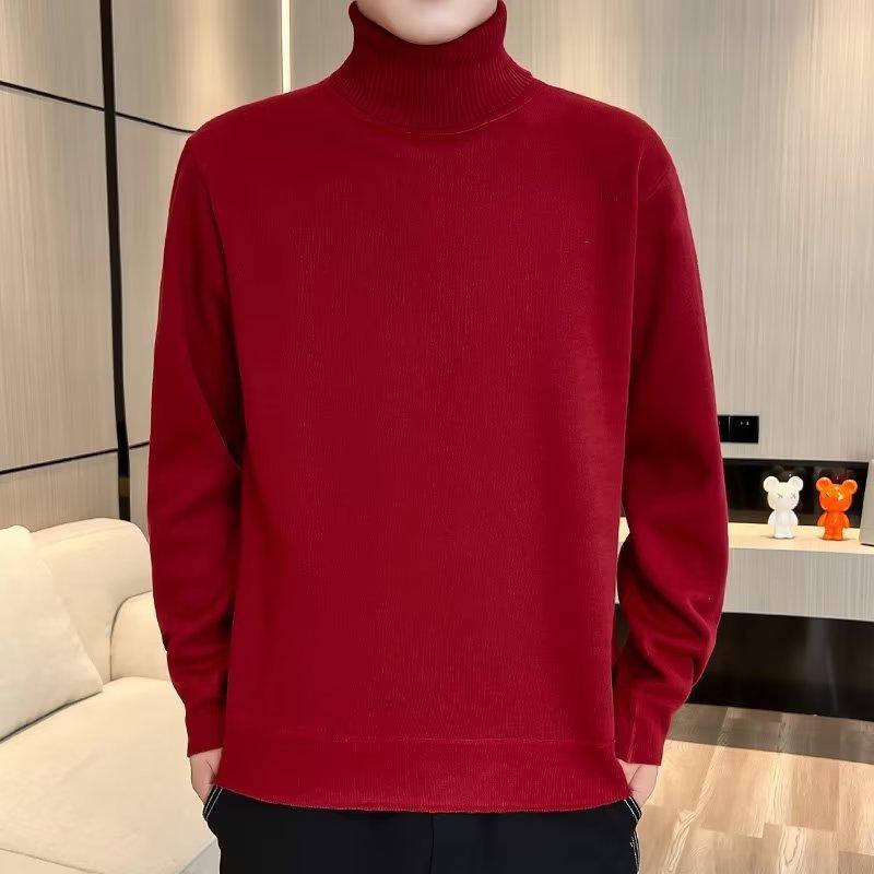 Suéter masculino meia gola alta outono e inverno cor sólida quente malha camisa de fundo versátil suéter de gola média moda masculina da moda