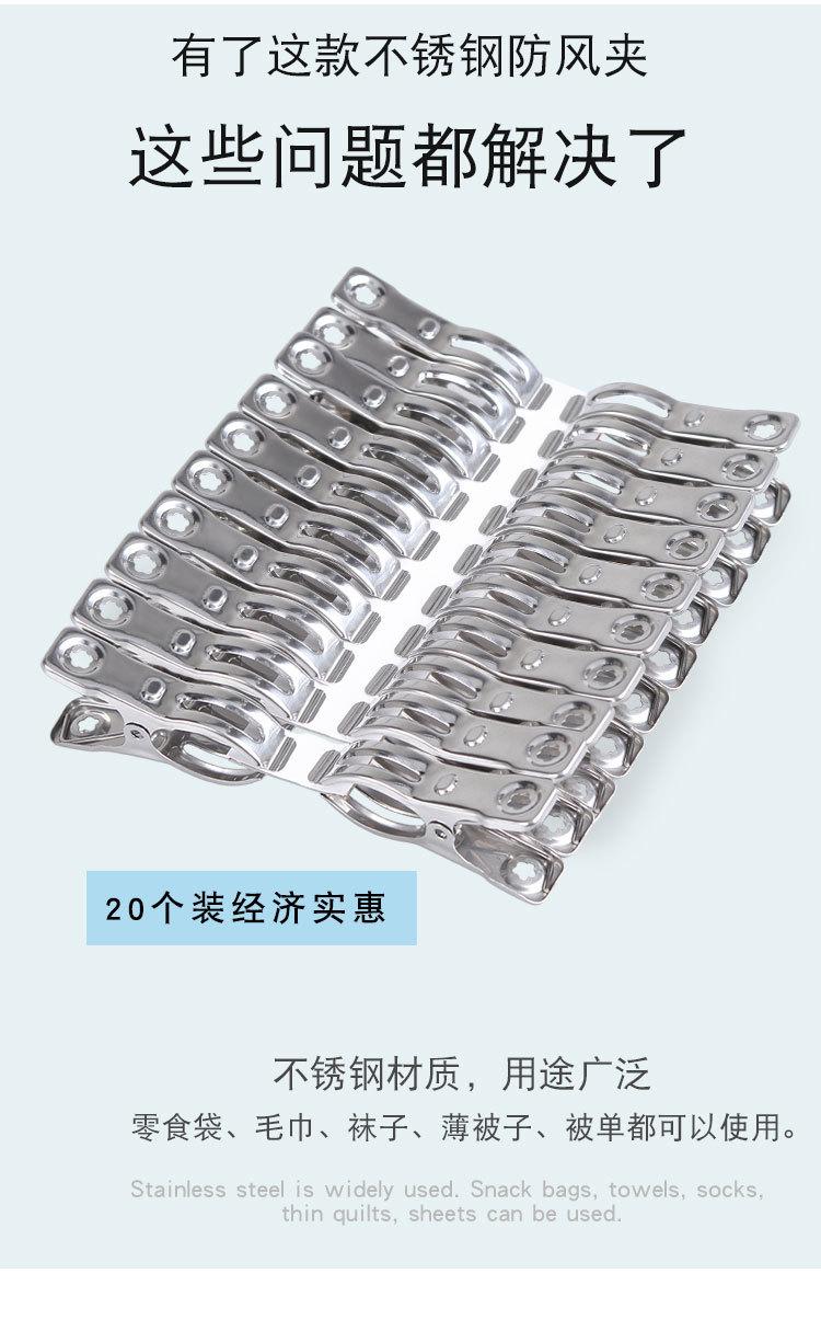 Clipe pequeno de aço inoxidável Clipe de colcha de secagem de roupas domésticas Multifuncional Clipe de roupas à prova de vento Meias Roupa interior Clipe de secagem fixo