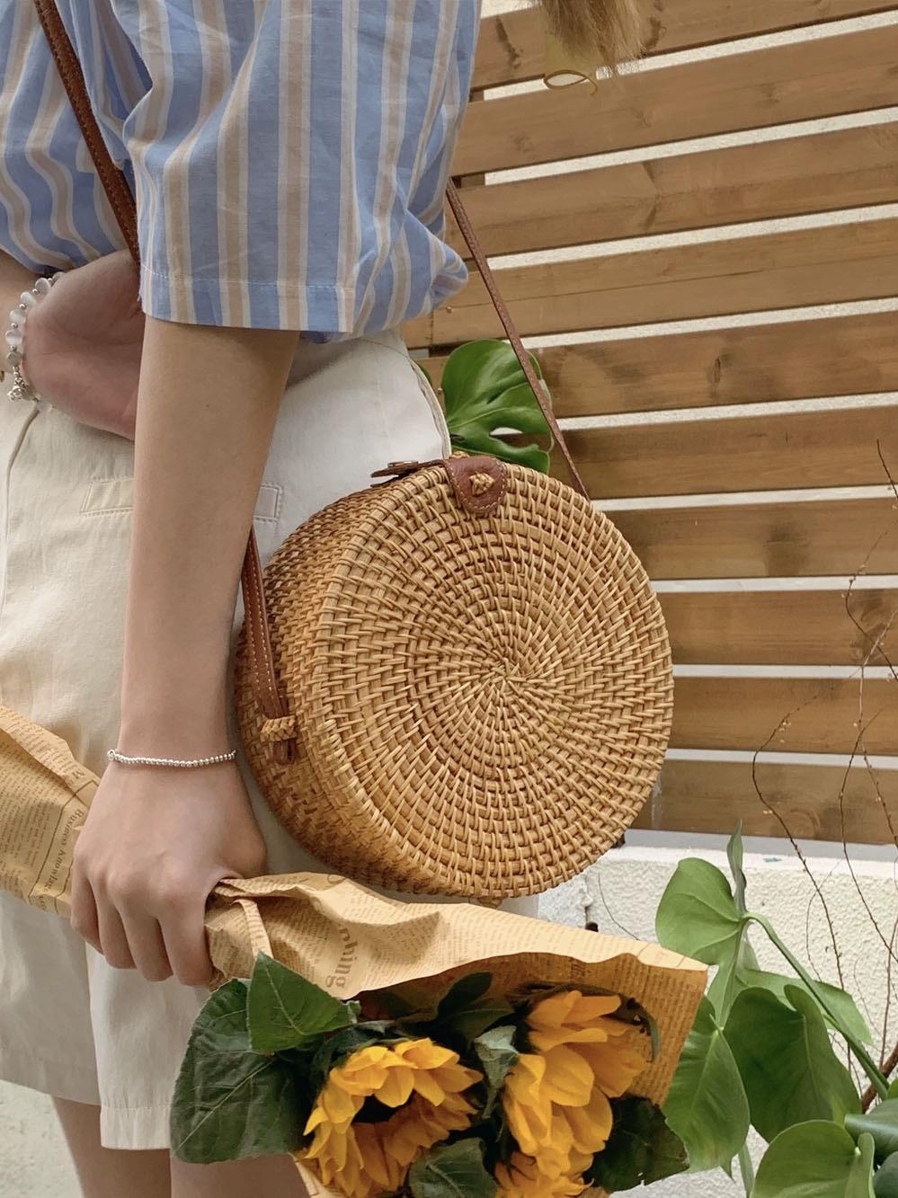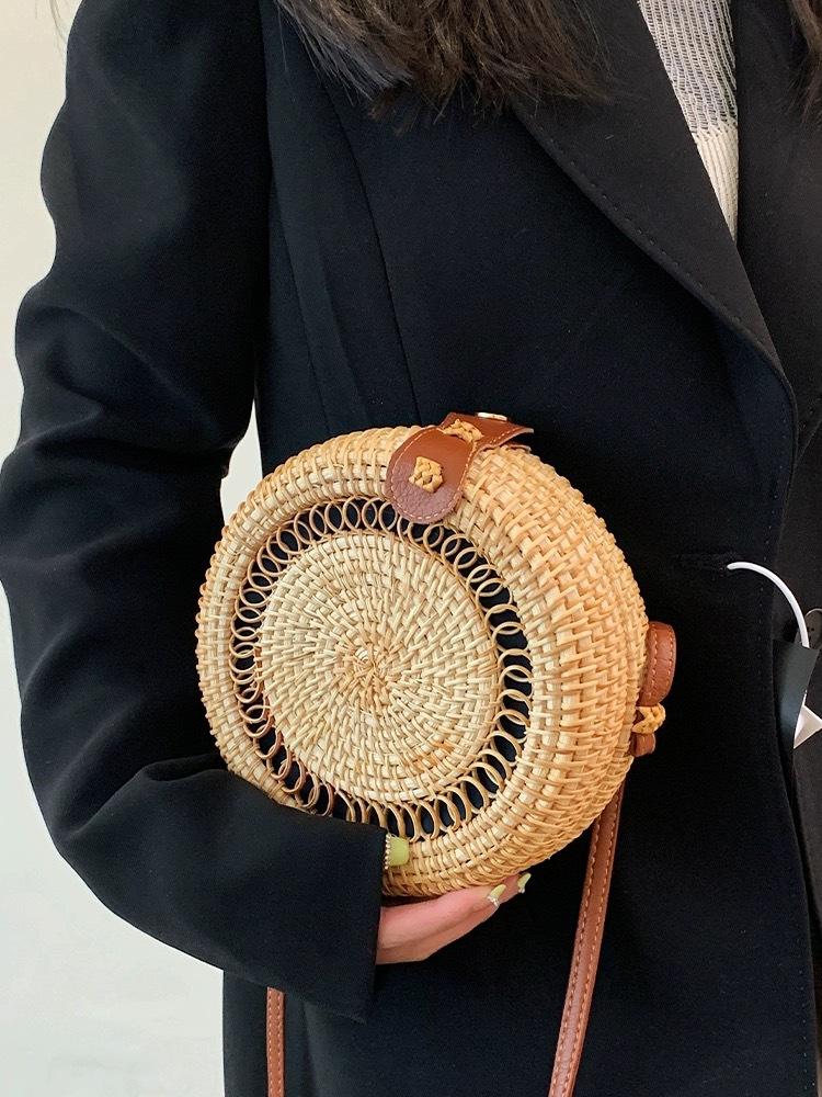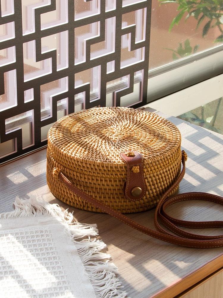 Bolsa de couro simples com fivela: diâmetro 20 cm, altura 8 cm (peso cerca de 255 g)