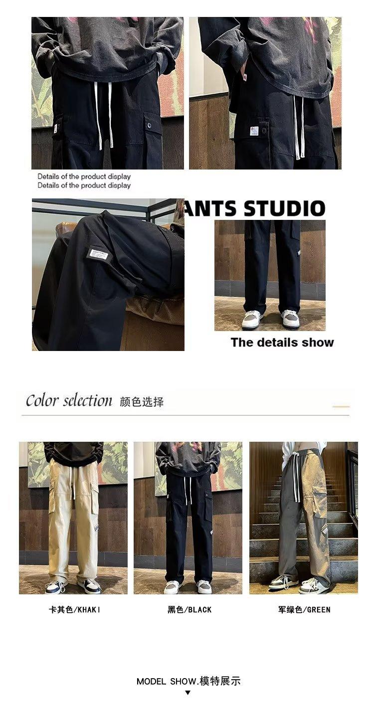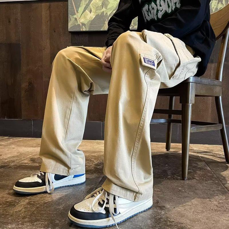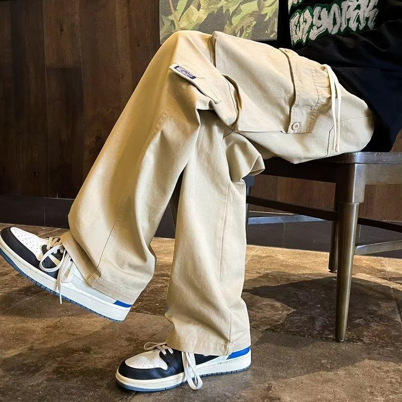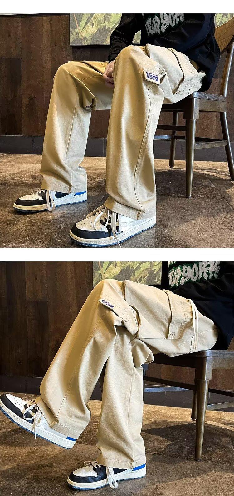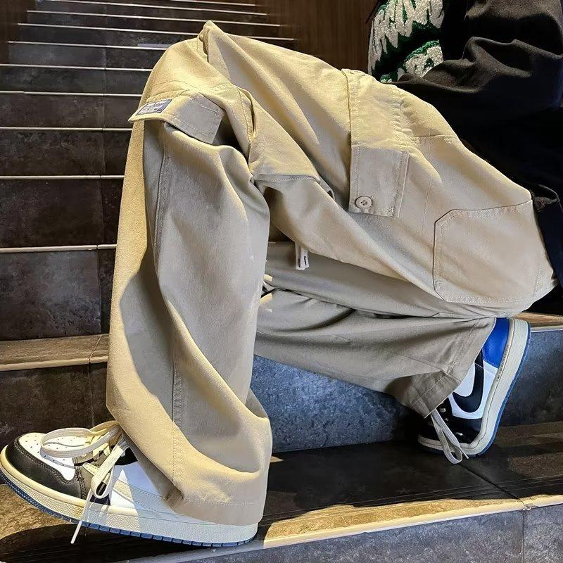Macacão multi-bolso estilo americano marca de moda masculina design de nicho calças retas ins calças largas de rua