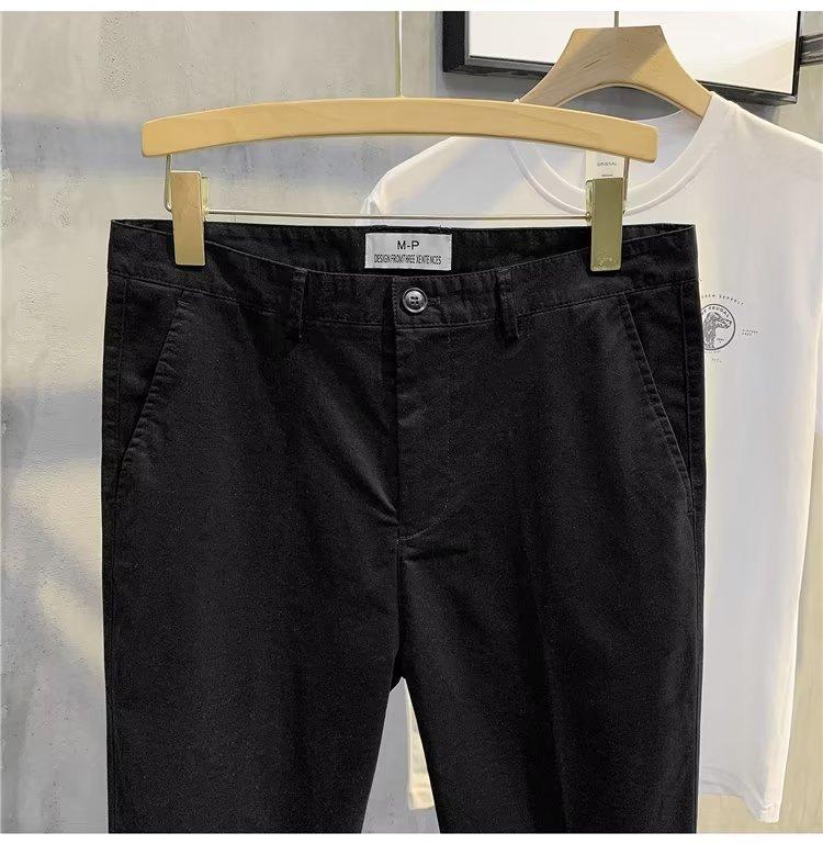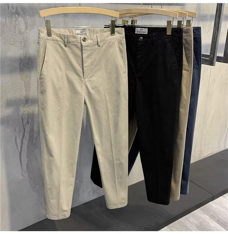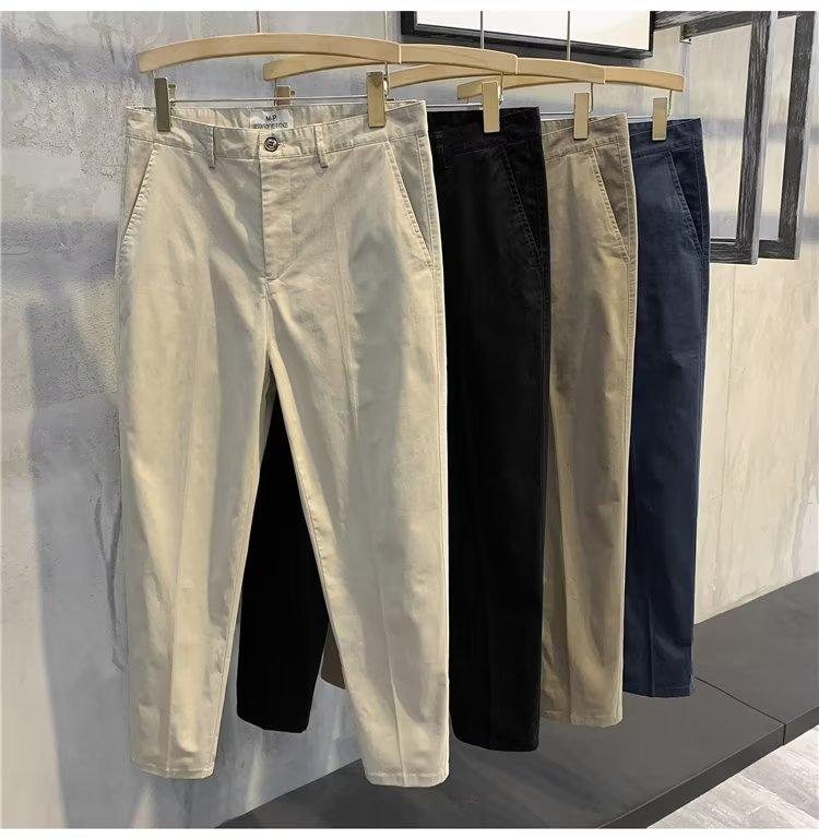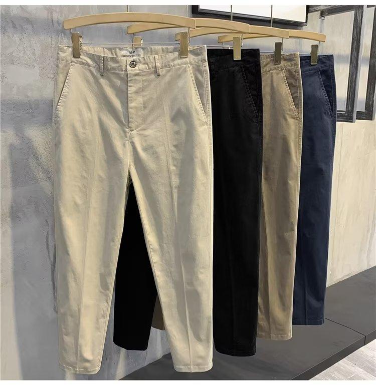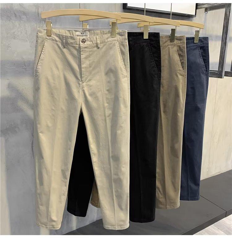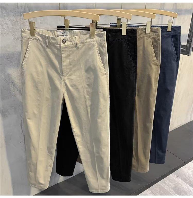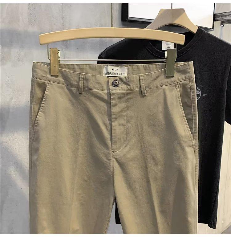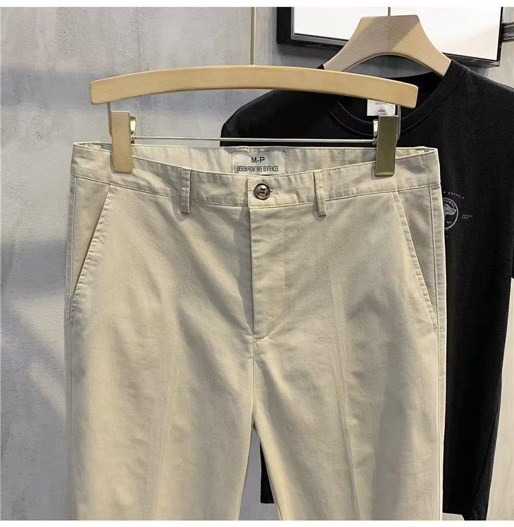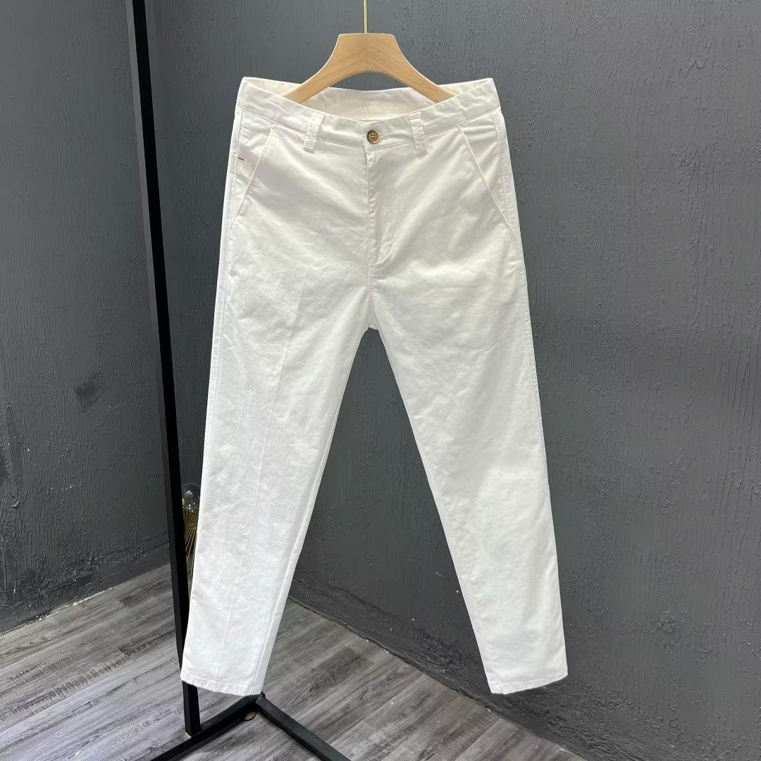 Calças casuais brancas masculinas Calças finas de verão pequenas Calças retas simples Primavera e outono Calças curtas masculinas Calças de algodão para negócios