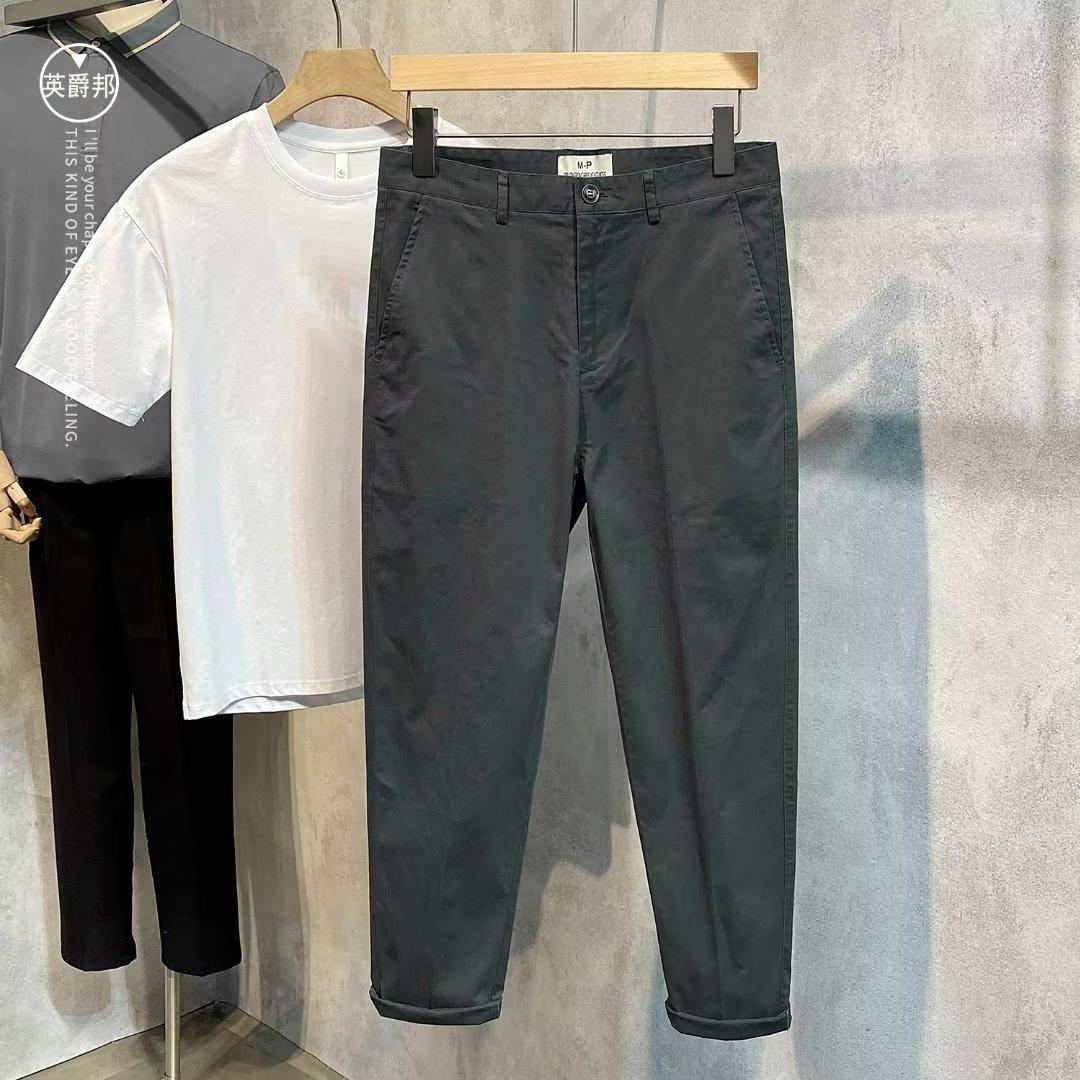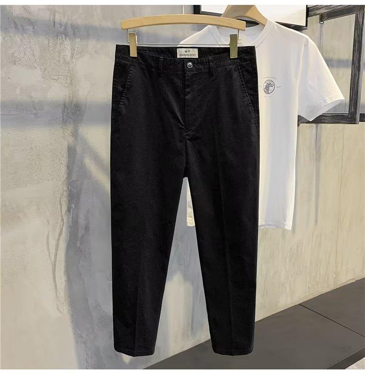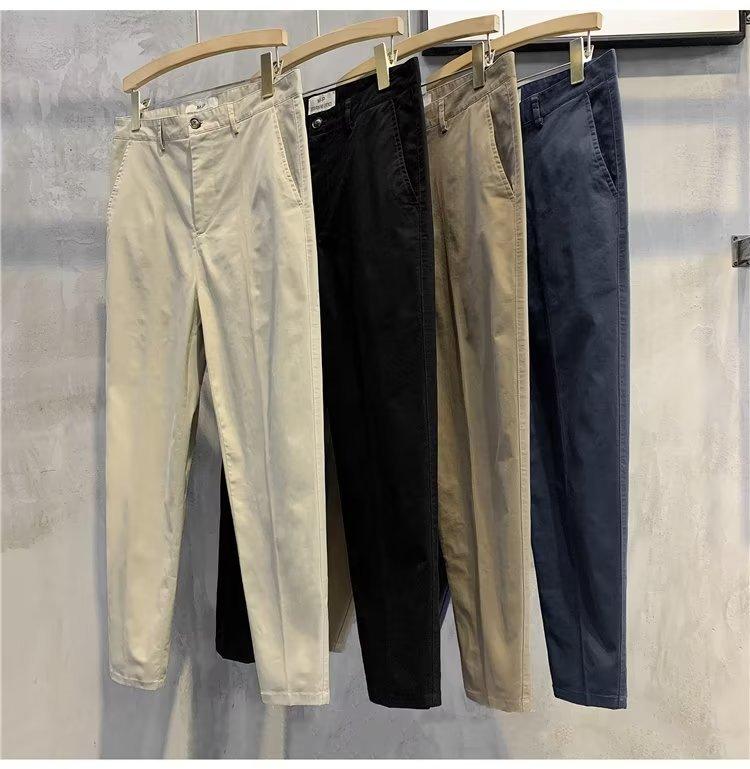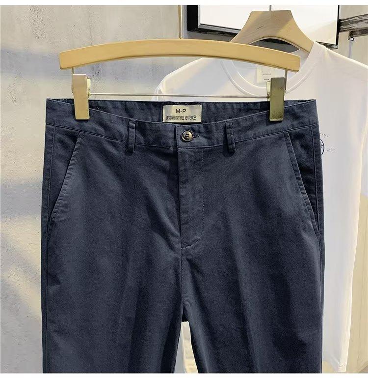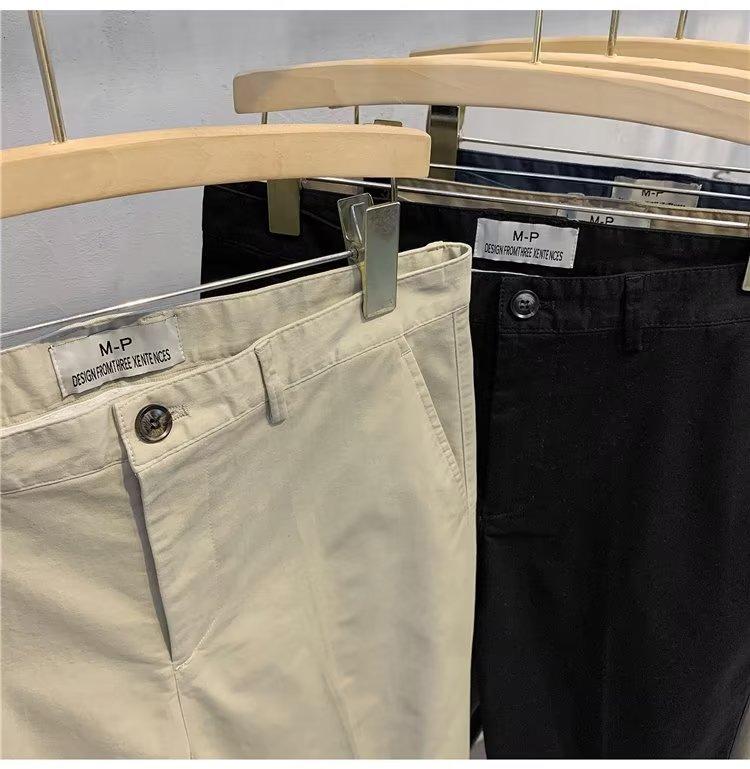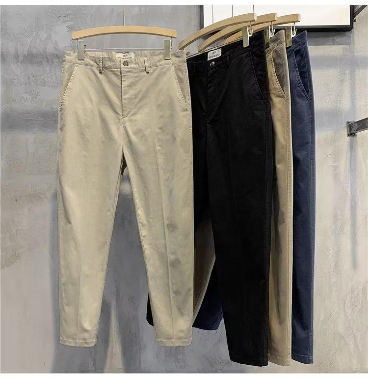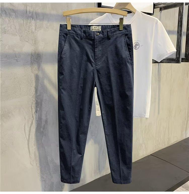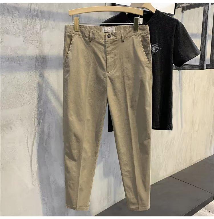 Calças casuais brancas masculinas Calças finas de verão pequenas Calças retas simples Primavera e outono Calças curtas masculinas Calças de algodão para negócios