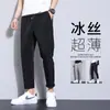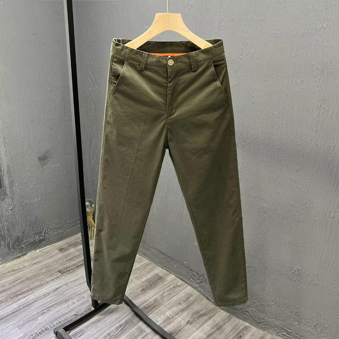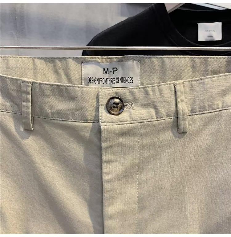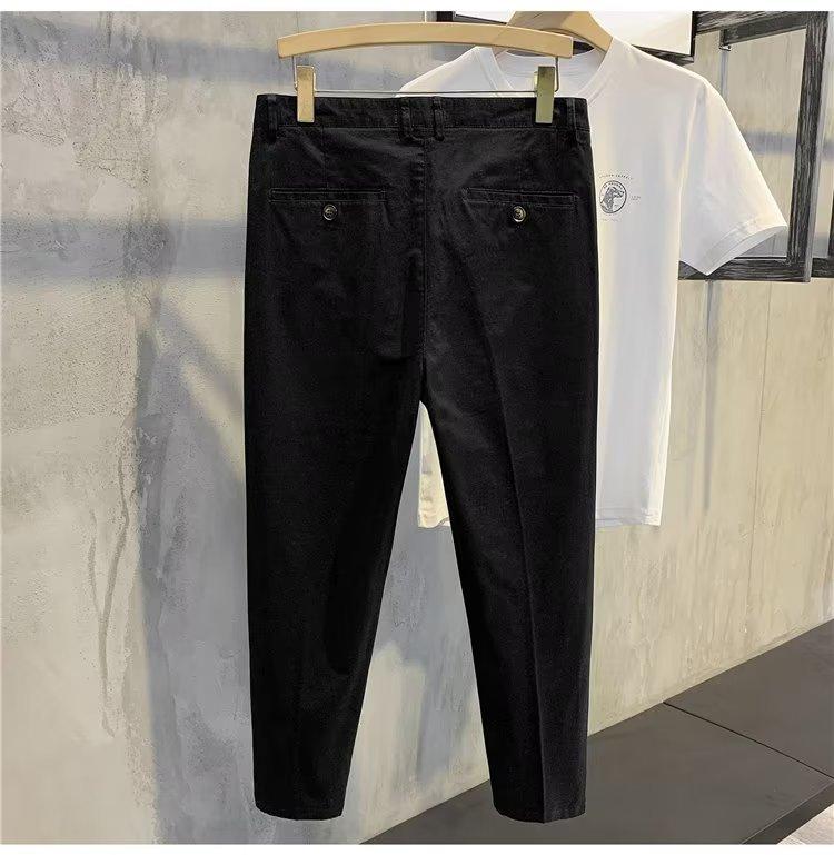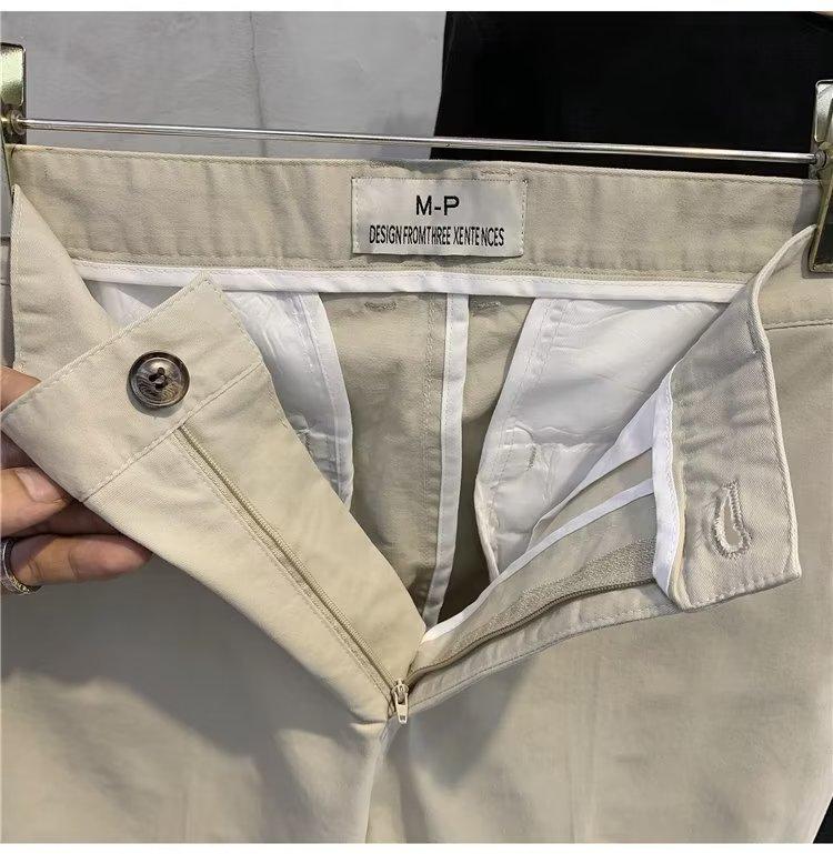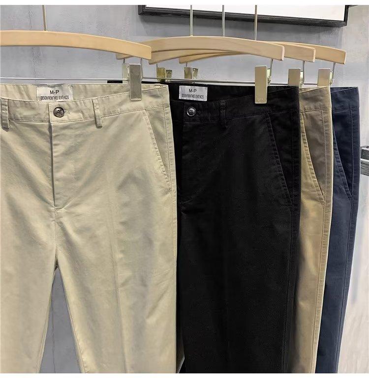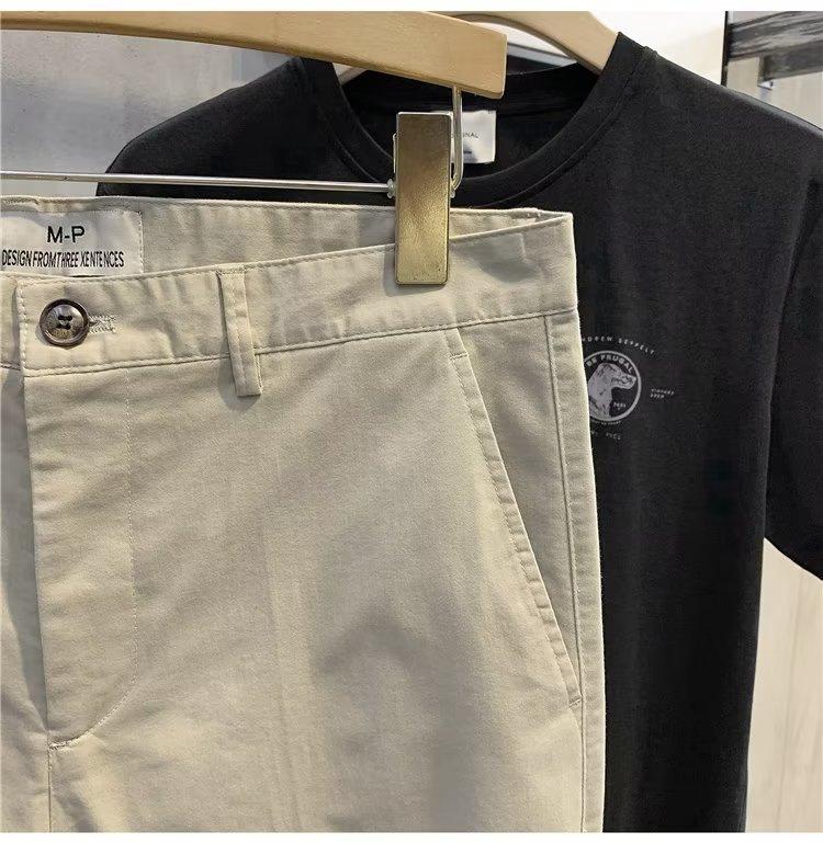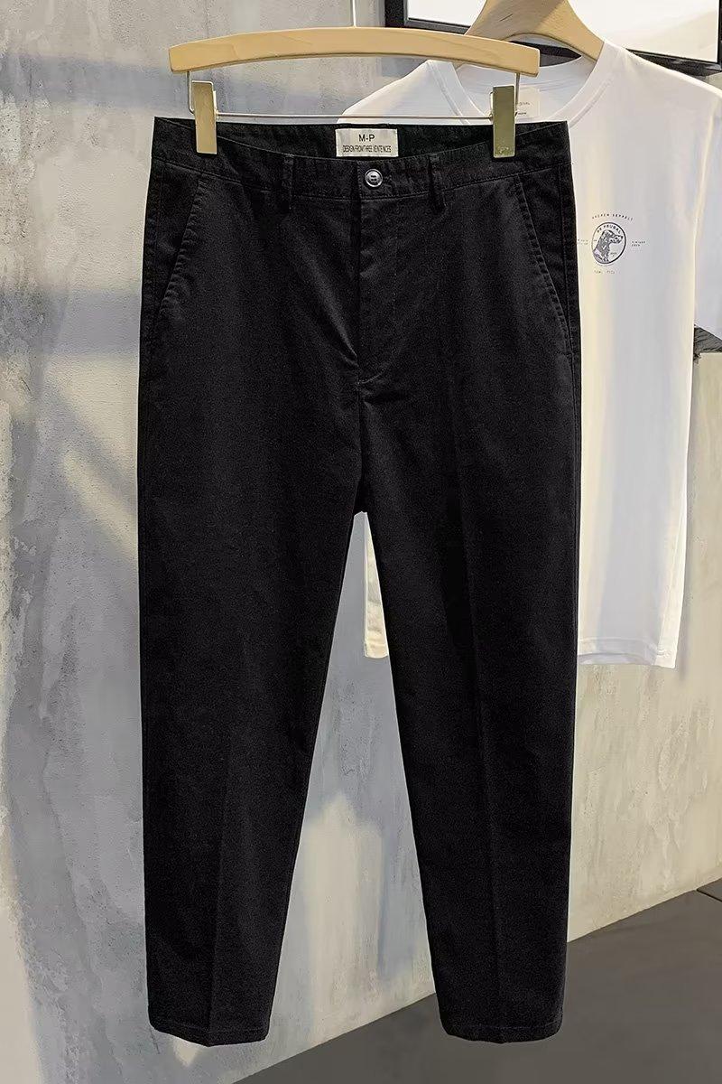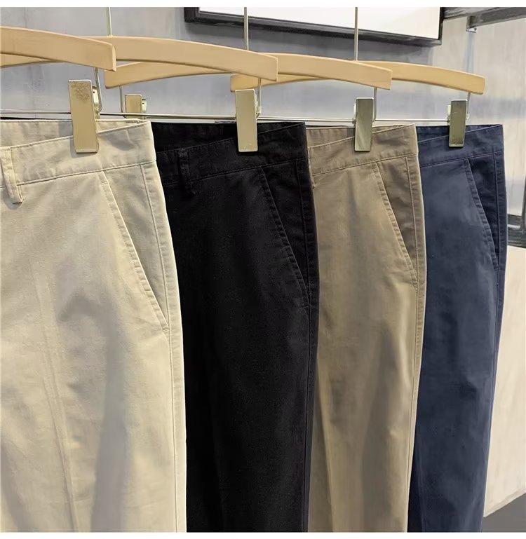 Calças casuais brancas masculinas Calças finas de verão pequenas Calças retas simples Primavera e outono Calças curtas masculinas Calças de algodão para negócios