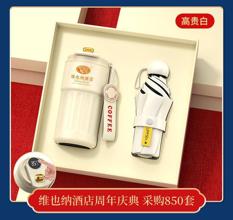 White/coffee cup + shenzhou t20 fan + 4-wire power bank + semi-shading 50% off umbrella/m2-beige gift box