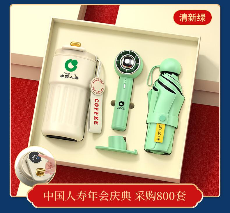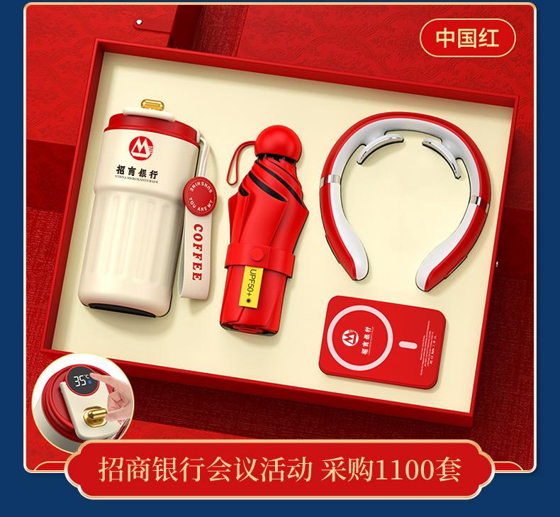 Red/coffee cup + shenzhou t20 fan + 4-wire power bank + semi-shading 50% off umbrella/m2-beige gift box