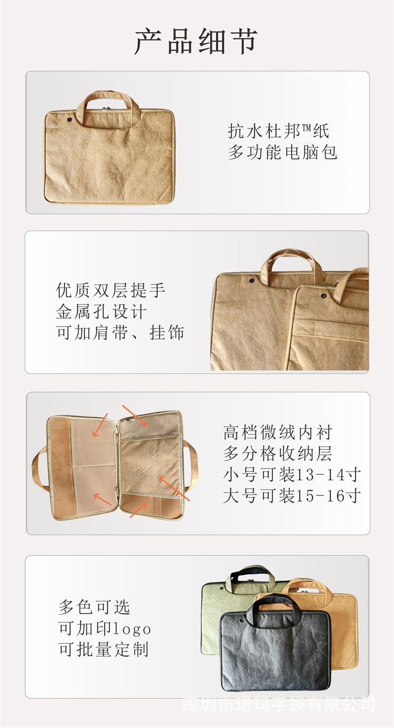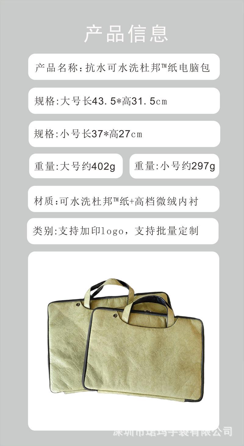 Pasta de papel DuPont ultraleve, amassada, lavável e resistente à água/bolsa para computador/bolsa de forro
