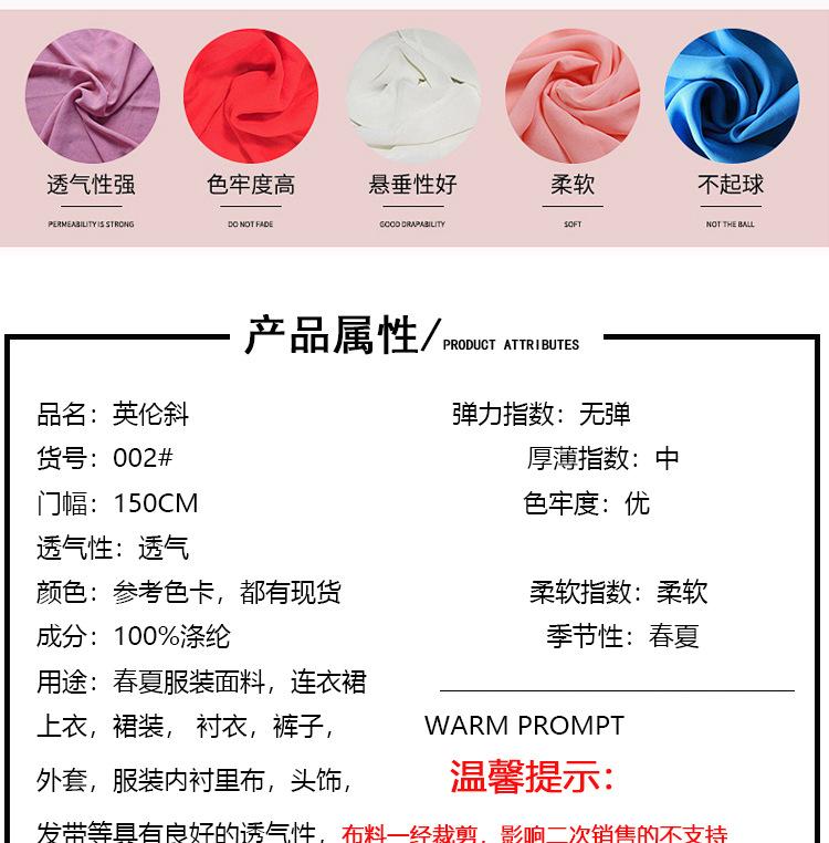 Tecido de sarja oblíqua britânica, tecido de cor sólida, material de vestuário em estoque, espessamento por atacado