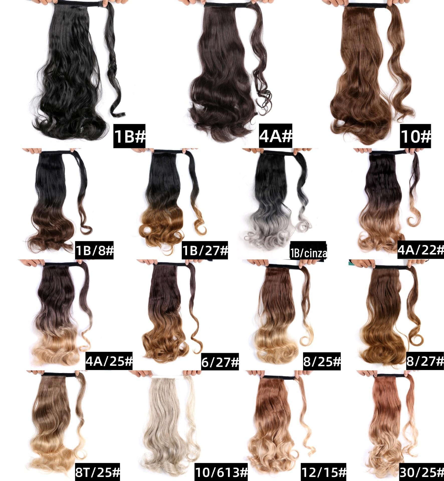 Fibra química transfronteiriça peruca de seda fosca rabo de cavalo pedaço de cabelo encaracolado longo cor única e dupla Velcro onda grande rabo de cavalo trança mancha