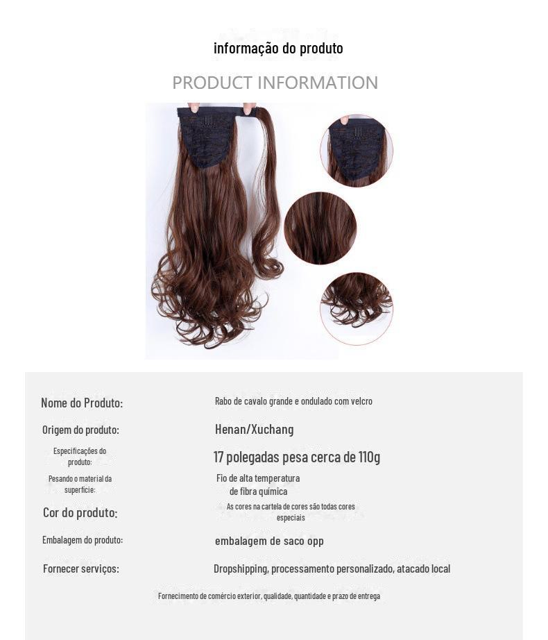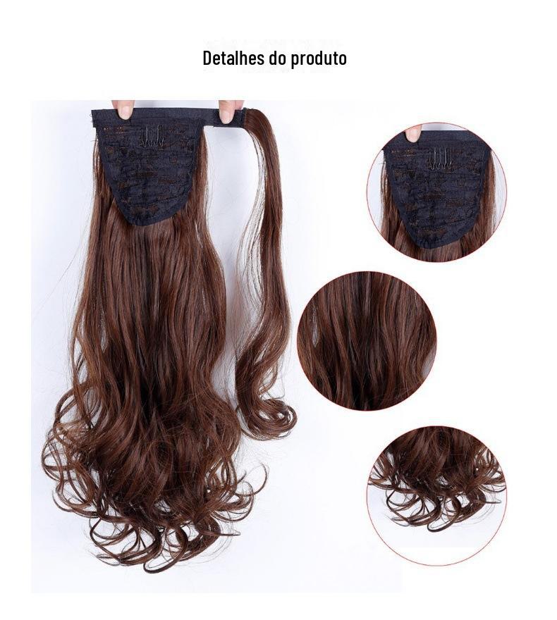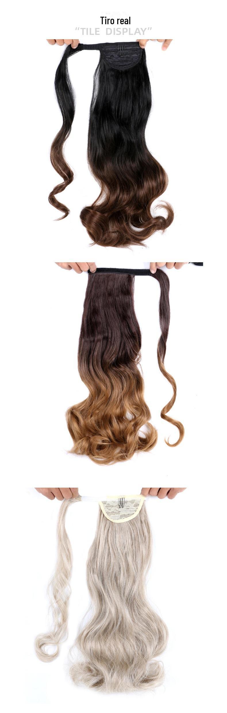 Peruca de comércio exterior feminina, rabo de cavalo de velcro, milho, permanente, fofo, longo, cacheado, rabo de cavalo, seda natural fosca, peruca ondulada de água¥8Compre agora