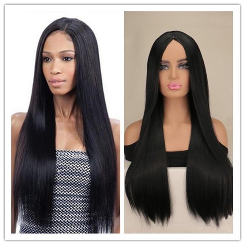 Comércio exterior de meia-parte europeia e americana moda feminina simulação realista fibra química alta temperatura seda longa peruca de cabelo liso¥13Compre agora