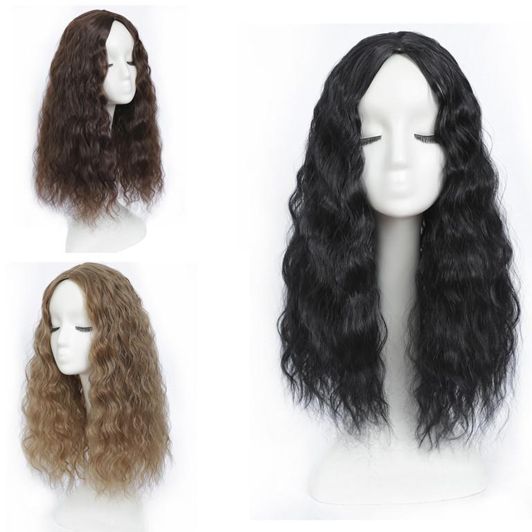 Peruca de seda de alta temperatura com fibra química transfronteiriça, peruca longa e encaracolada, divisão média, cabeça feminina, bloco de substituição de couro cabeludo, fabricante local¥17Compre agora