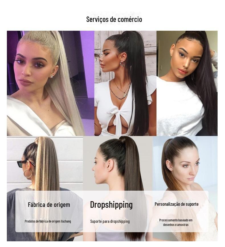 Peruca cross-border rabo de cavalo 32 polegadas varinha mágica rabo de cavalo alto peruca enrolando grande onda longo cabelo encaracolado pacote¥11Compre agora