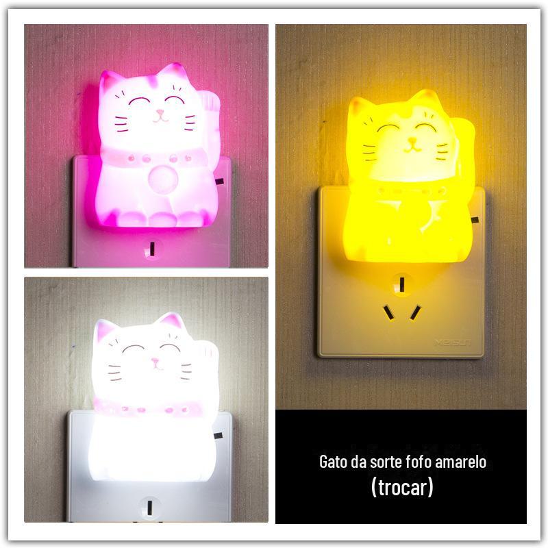 Criativo sorte gato de poupança de energia quarto Luminosa Lâmpada plug-in lâmpada de cabeceira Bebê Bebê Bebê LED luz noturna luz de enfermagem