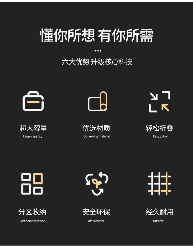 Descrição do produto: Está dividido em três espaços independentes e possui vários bolsos externos para aproveitar ao máximo o espaço e os recursos; o design é simples e o espaço de armazenamento é suficiente.