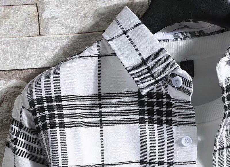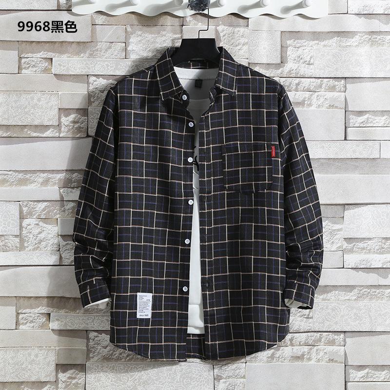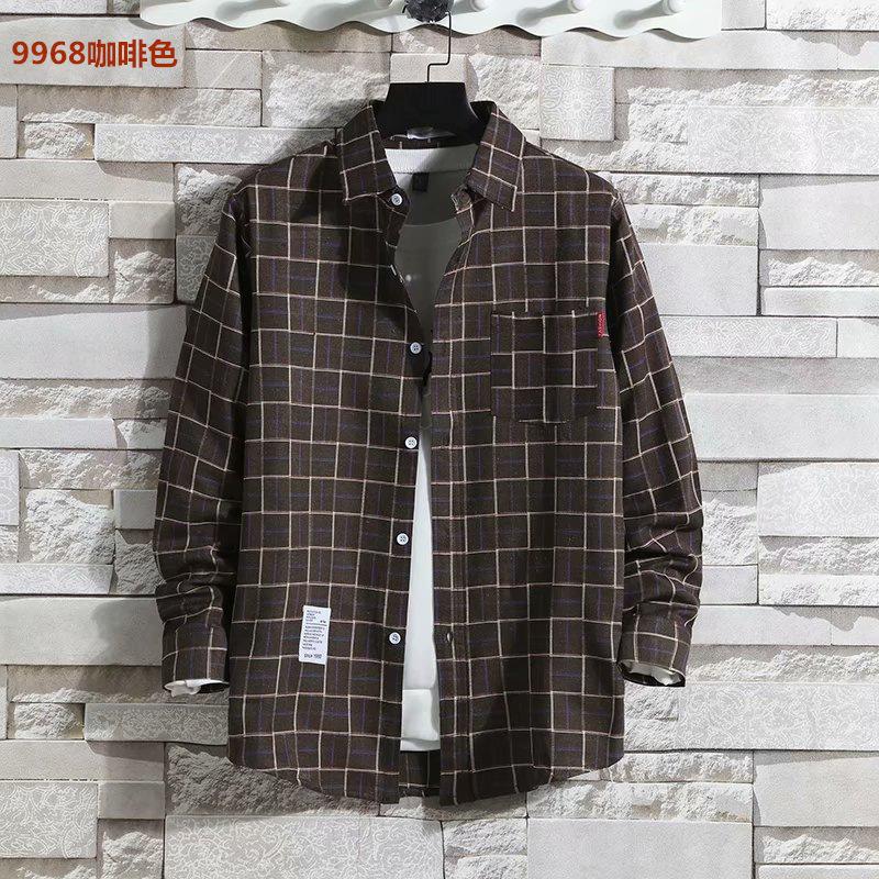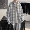 Jaqueta de manga comprida estilo coreano na moda fina casual para todos os jogos Primavera e outono Camisa xadrez estilo Hong Kong Roupas masculinas