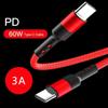 Linha de transmissão C a C para C de cabeça dupla C de 60 W Linha de carregamento rápido PD trançada Linha de carregamento Type-c Linha de conexão de linha de dados de telefone celular