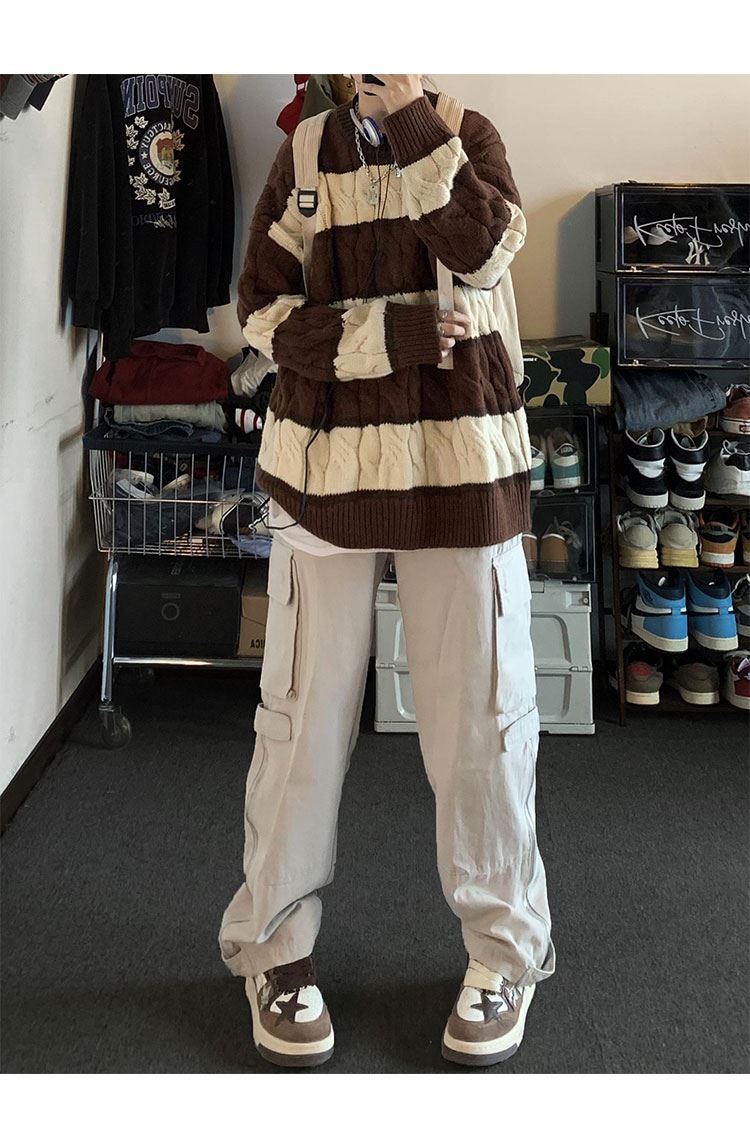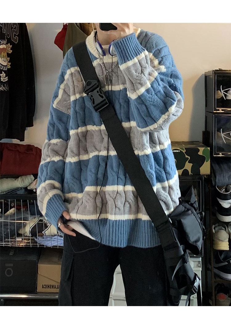 Suéter masculino grosso solto all-match casual pulôver suéter estilo preguiçoso na moda ins suéter vendas diretas da fábrica