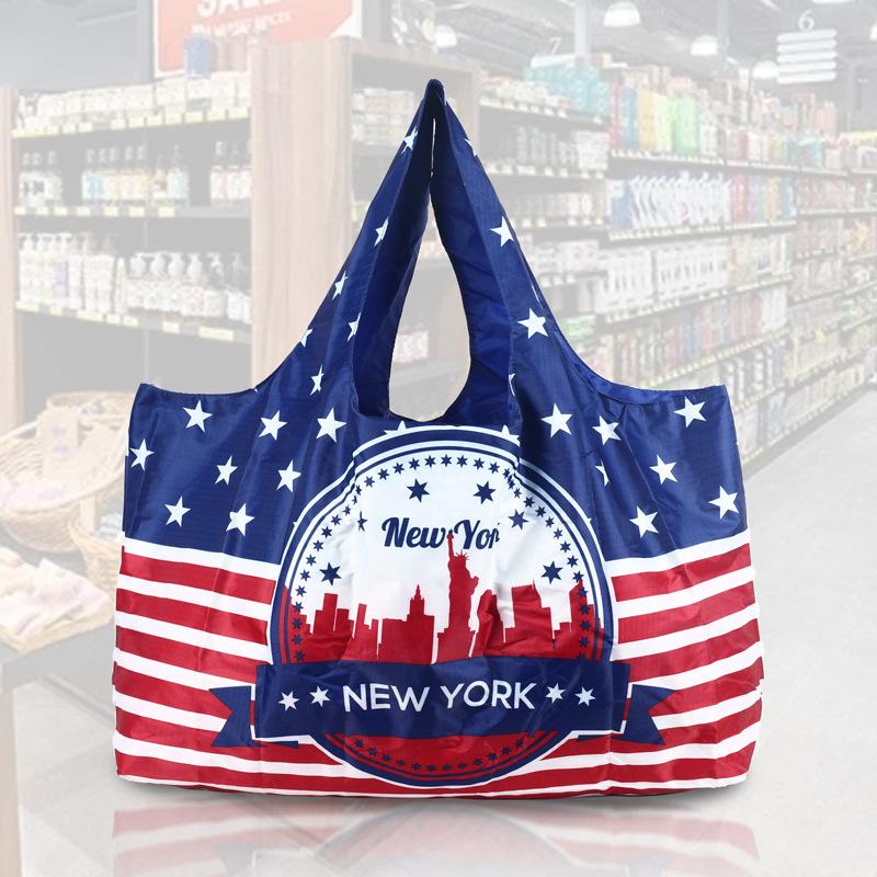 Sacola de Compras Dobrável Ecológica Sacola Tote Impermeável para Mulheres Capacidade Extra Grande Fácil Armazenamento Bolsa Portátil Cor Contrastante