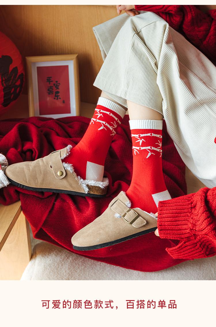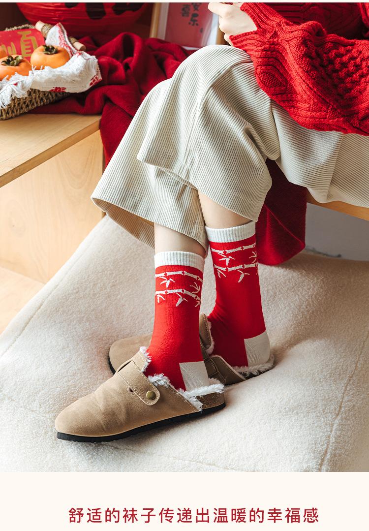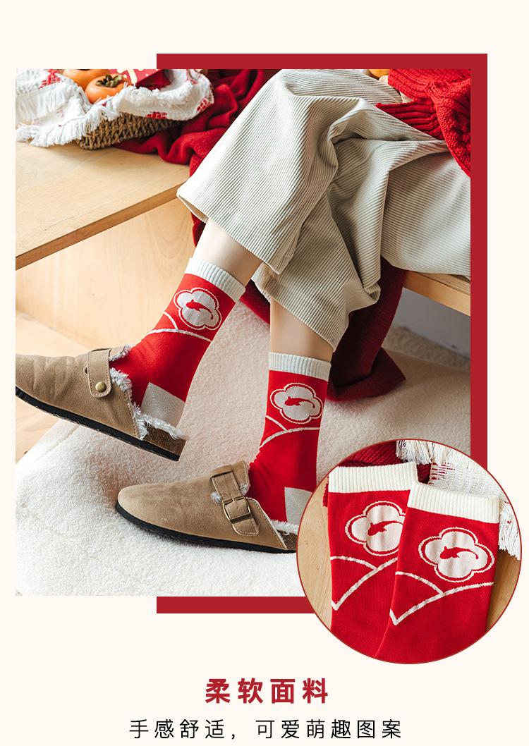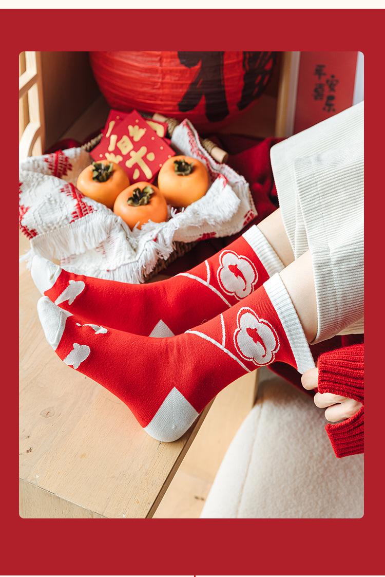 Meias de ano novo meias femininas de comprimento médio da panturrilha Ano Novo festivo outono e inverno meias de Natal fofas unissex ano de nascimento meias vermelhas