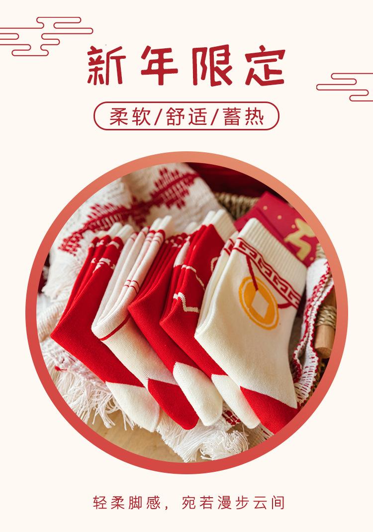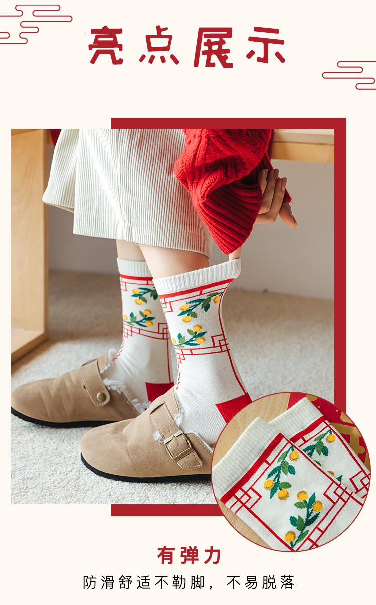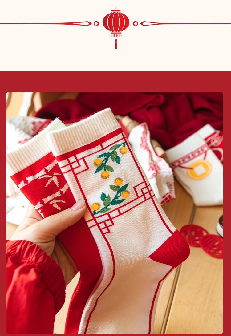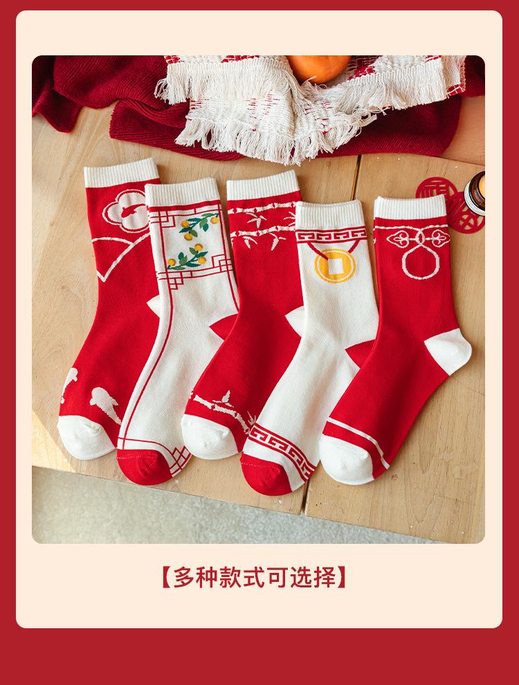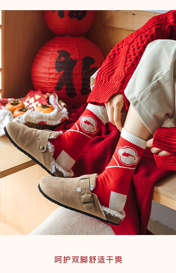 Meias de ano novo meias femininas de comprimento médio da panturrilha Ano Novo festivo outono e inverno meias de Natal fofas unissex ano de nascimento meias vermelhas