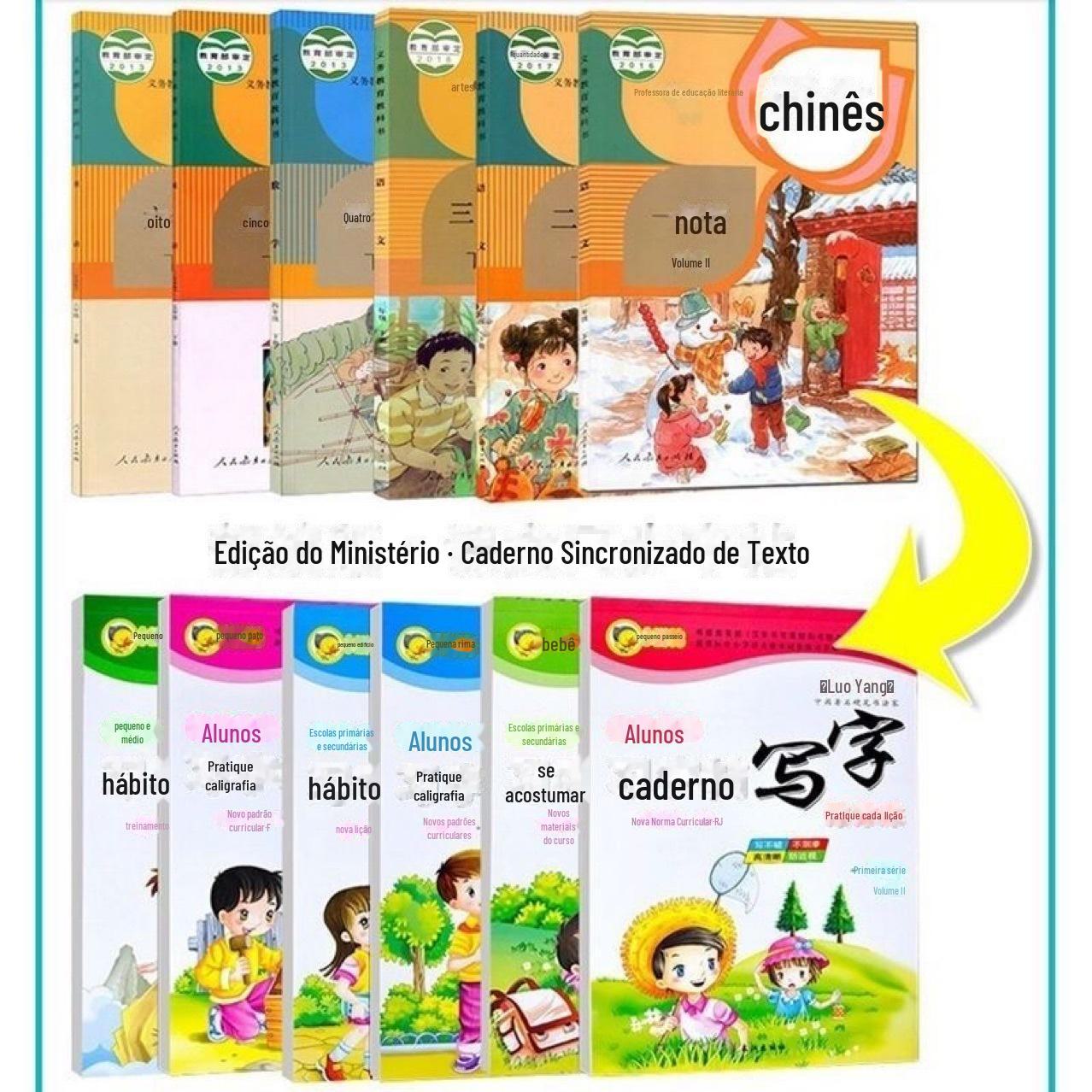 Nova edição dos alunos 2022 Novo padrão curricular Edição de educação popular 1-8 anos Livros superiores e inferiores Prática de lição de escrita Sincronização de livro didático Caderno de cópias