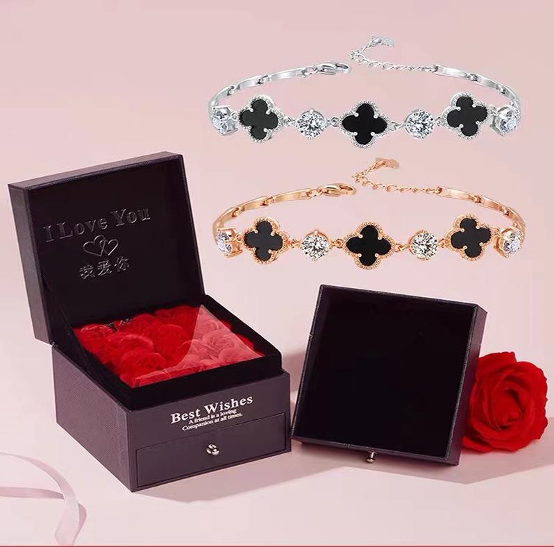 Compre Pulseira de palha de folha de quatro peças feminina ins design de nicho pulseira pulseira de menina presente para namorada namorada presente de aniversário no atacado no Joom.pro