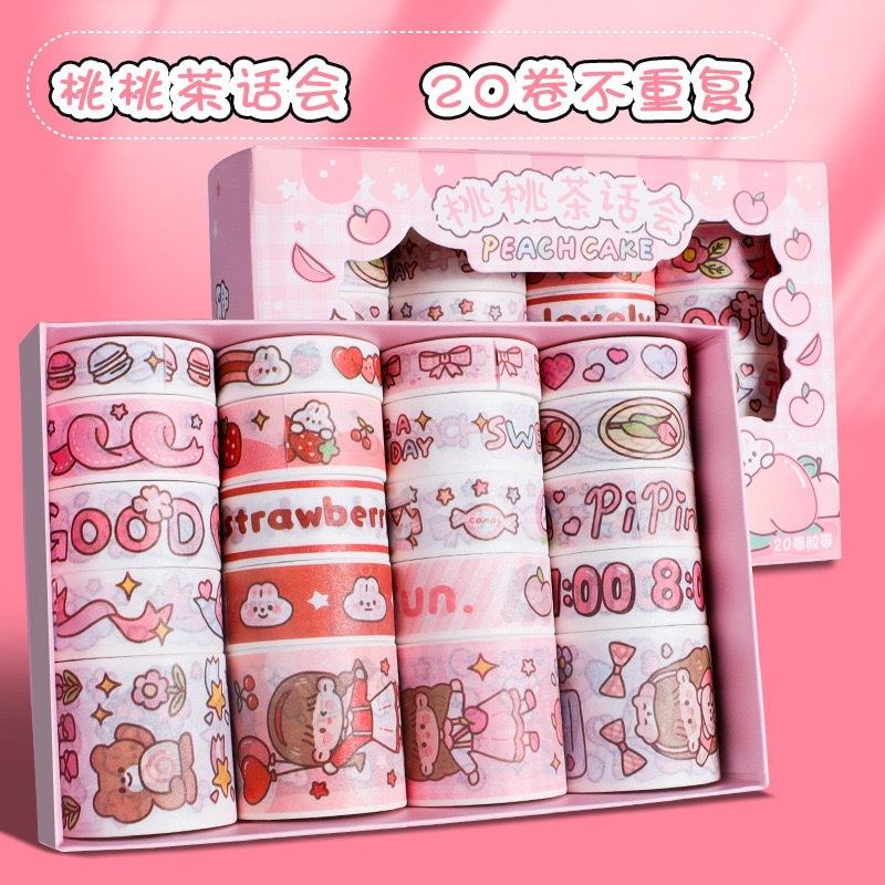20 volumes de fita adesiva de conta de mão, personagens fofos de desenhos animados, adesivo de coração de menina fofa, material de conta de mão, combinação