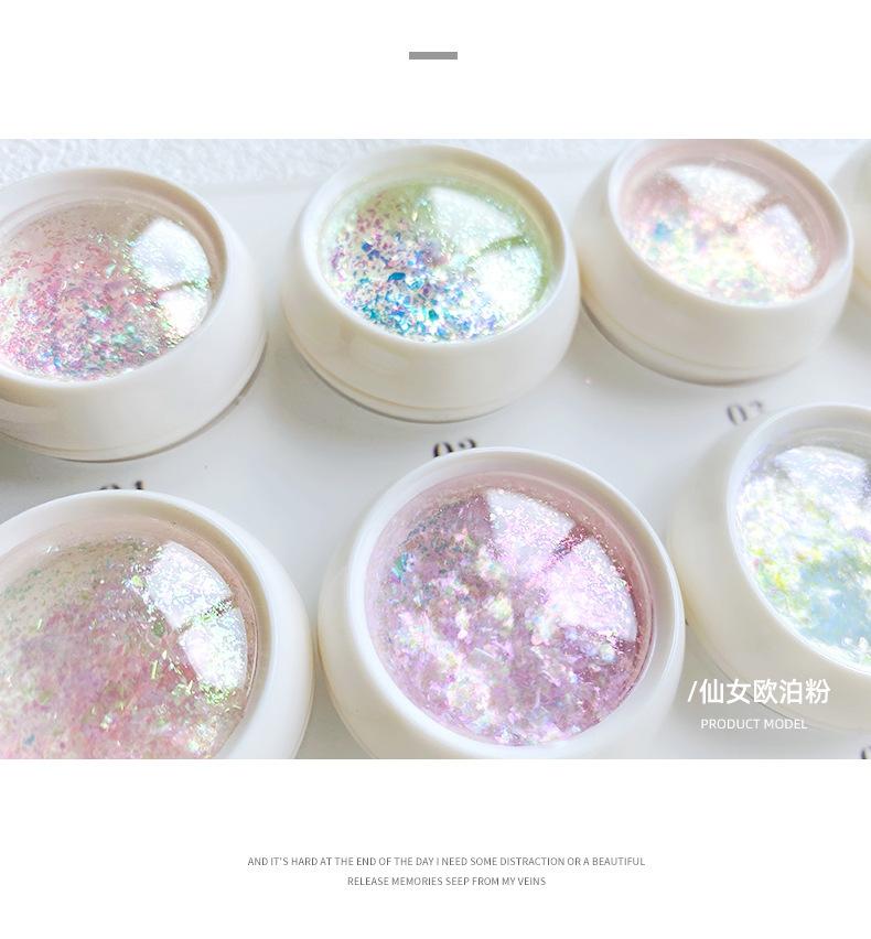 Compre Jóias de unhas Opala em pó Nova Internet celebridade polarizada pó sonho alto flash Aurora fina gelo cristal neve veludo pó brocado em pó no atacado no Joom.pro