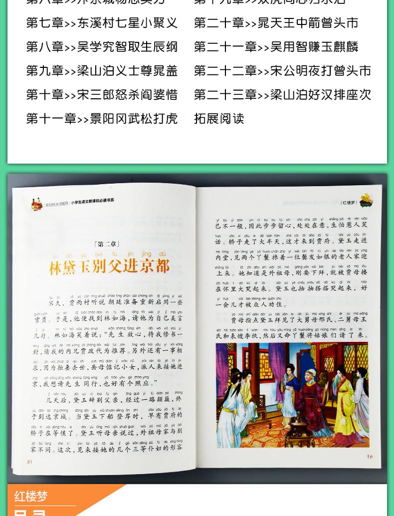 Quatro livros famosos genuínos, conjunto completo de edição fonética infantil, livros de leitura extracurriculares para alunos do ensino fundamental, clássicos da literatura clássica chinesa