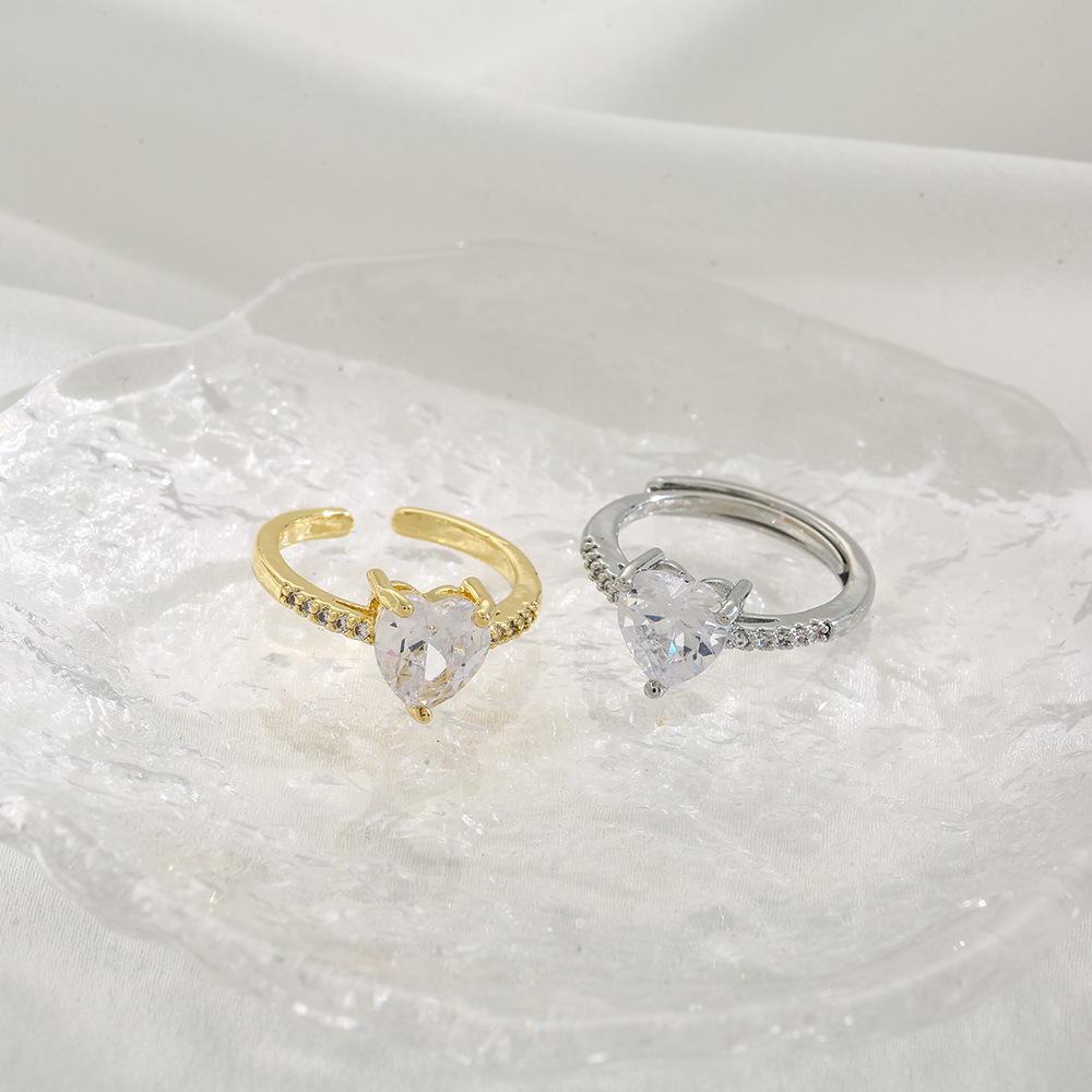 Nova moda Anel aberto ajustável feminino Joias da Coreia do Sul joias criativas zircônia brilhante Acessórios em forma de coração anel