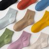 Meias de Primavera e Outono, Casuais de Meia-Cana, Resistentes a Odores, Absorventes de Suor, Meias Curtas de Algodão, Sem Costura, Respiráveis, Cor Sólida, Meias Longas Femininas, Versátil