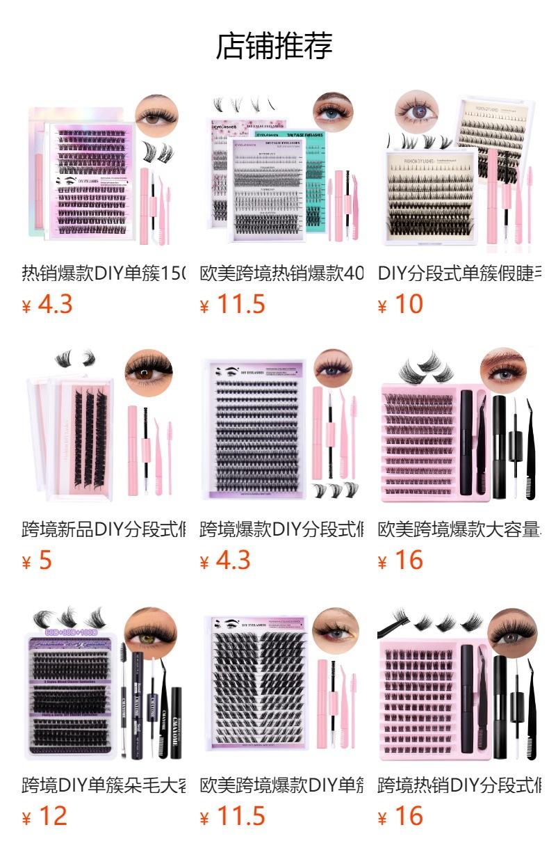 Cílios Postiços Populares Transfronteiriços Europeus e Americanos Estilo Raposa de Cacho Único, Cílios Postiços Segmentados DIY Naturalmente Espessos Pacote para Viagem