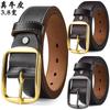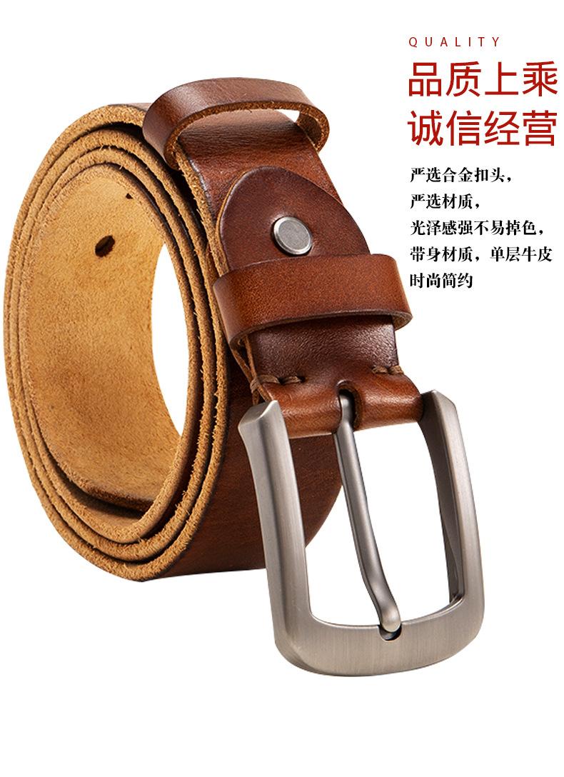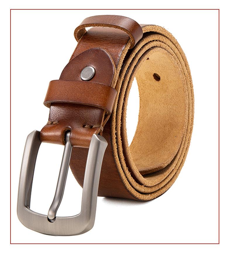Vegetal curtimento primeira camada de couro amarelo dos homens lavado vintage cinto pino fivela puro couro todos- combinar cinto de couro dos homens atacado
