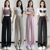 Real Shot Acetic Satin Calças de Perna Larga Verão Feminino Cintura Alta Fina Dosagem Solta Reta Casual Calças de Seda de Gelo