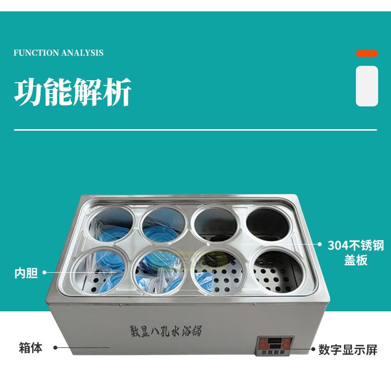 Aquecimento elétrico, display digital, banho-maria de temperatura constante, tanque de água de temperatura constante de oito furos, laboratório, poroso, aço inoxidável, anti-seco, banho-maria fervente