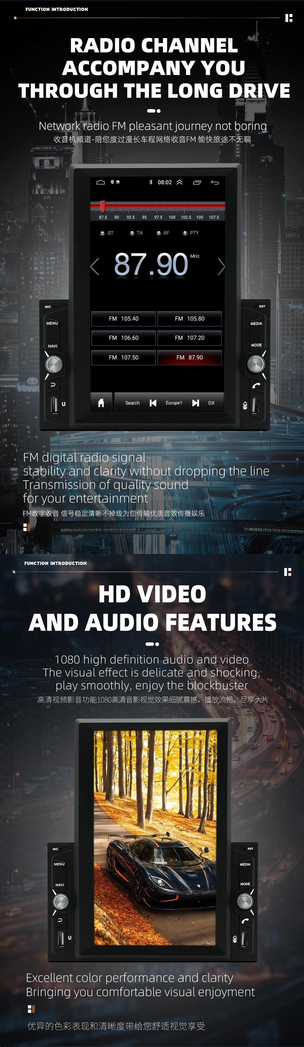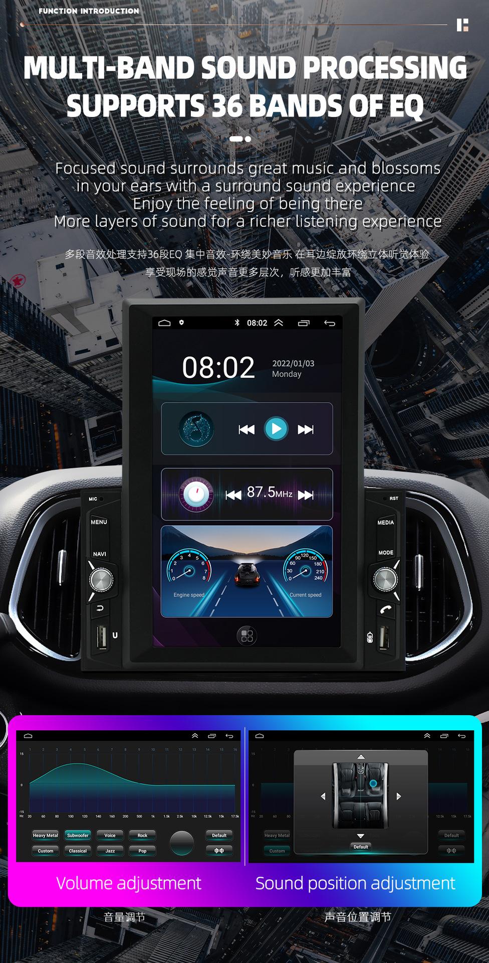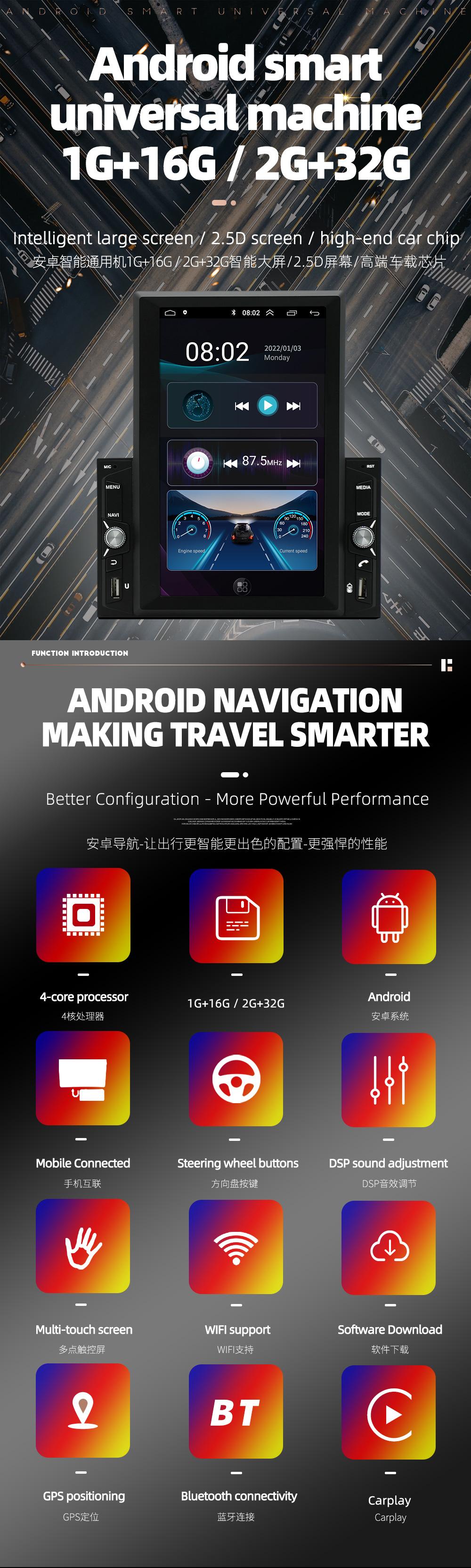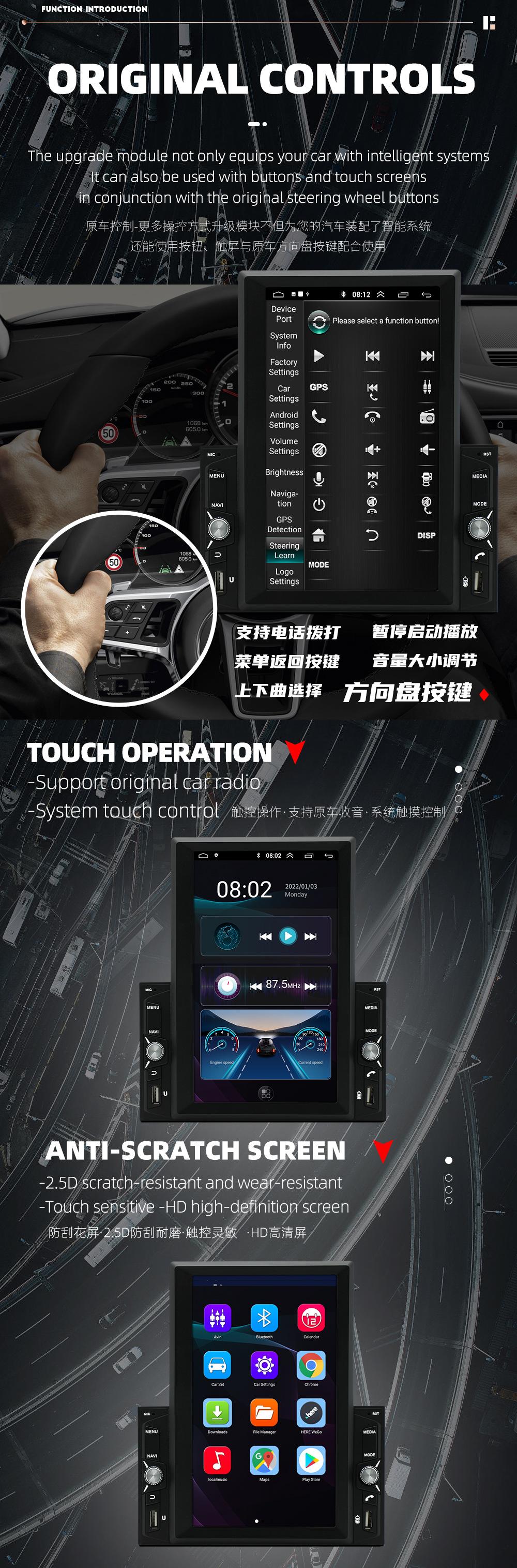 Venda quente tela vertical de 8 polegadas universal máquina carro controle central tela grande android navegação tudo-em-um máquina sem fio função carplay