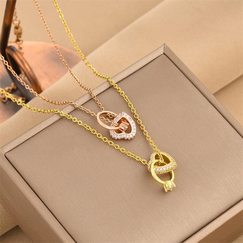 Europeu e Americano Novo Estilo Transfronteiriço Pequeno Fresco Diamante Coração Anel Pingente Acessórios Colar de Aço Titânio Corrente Feminina para Clavícula
