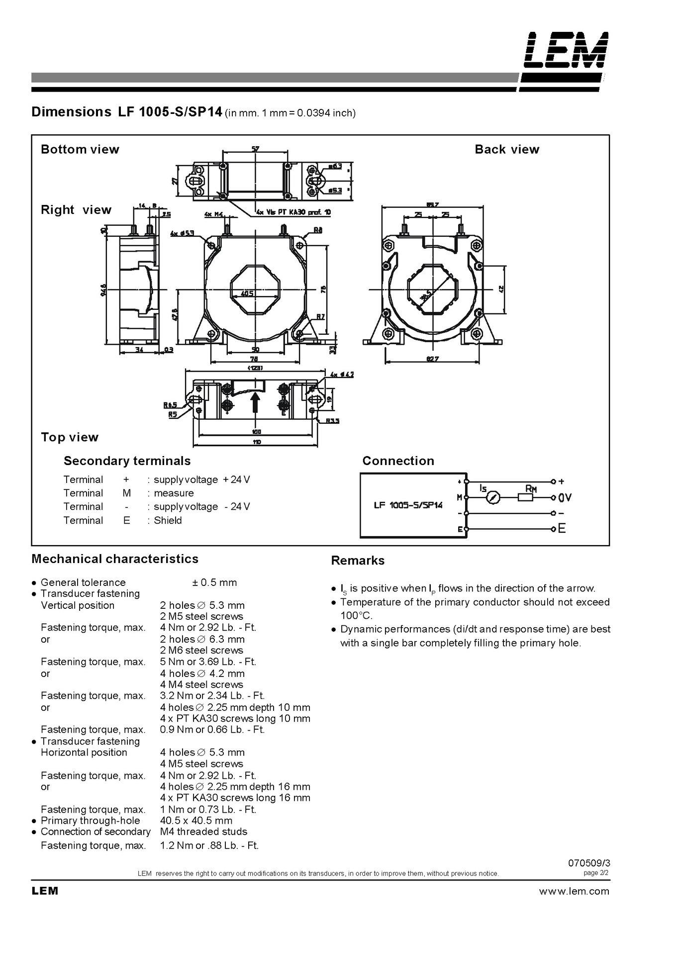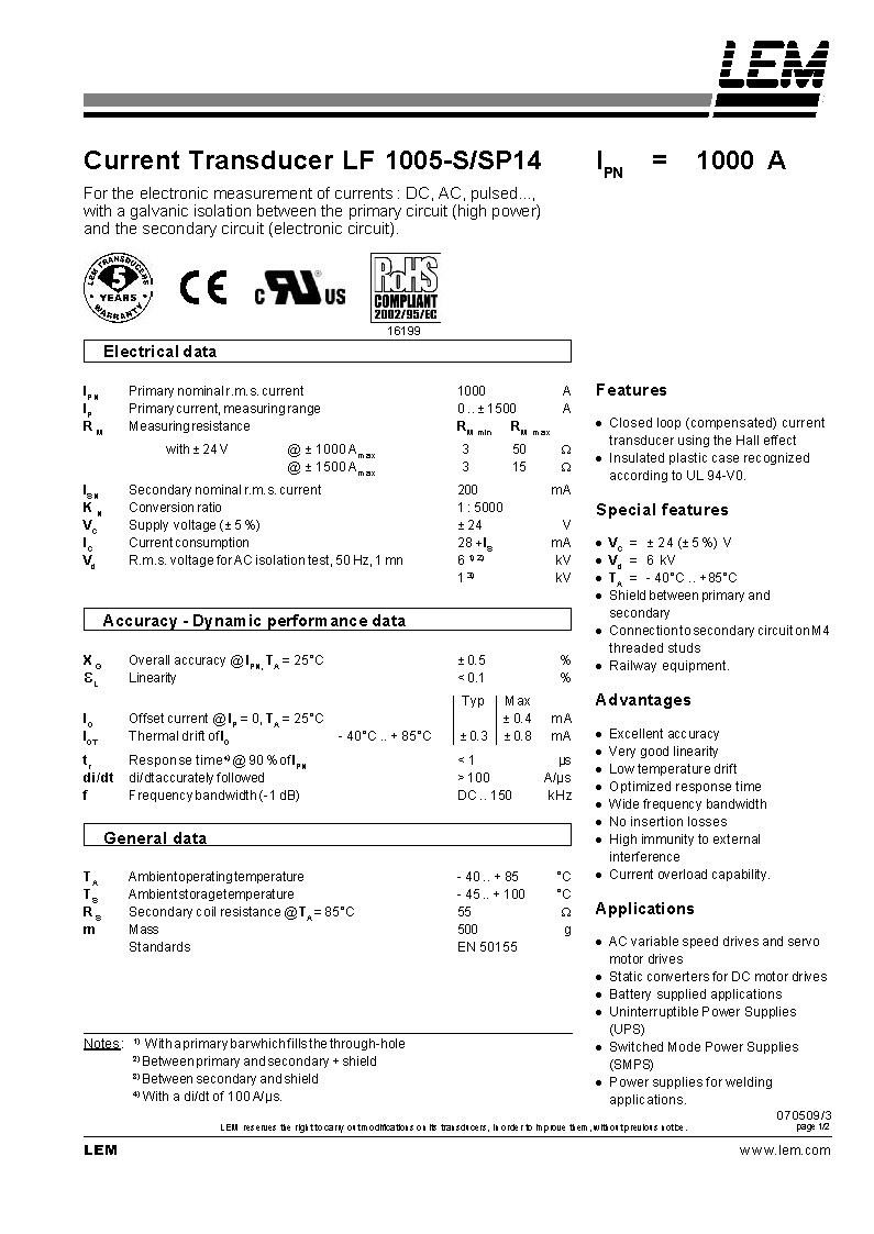LF1005-S / SP14 LEM circuito fechado Hall sensor de corrente transformador corrente nominal 1000A