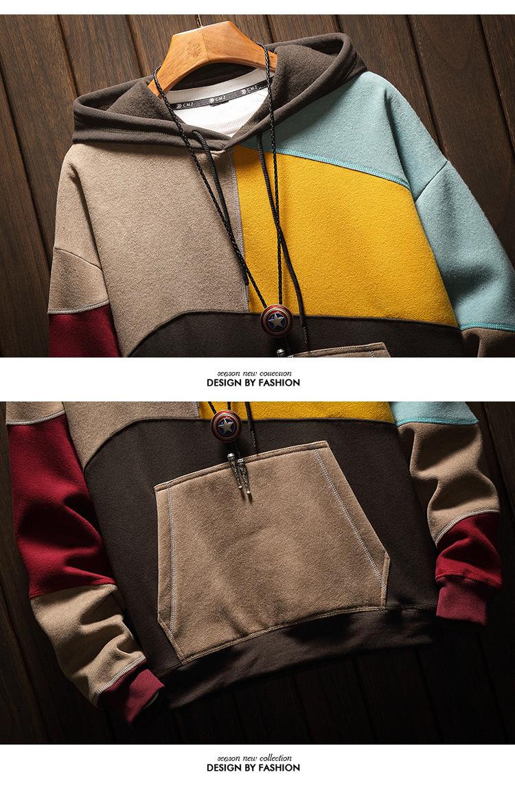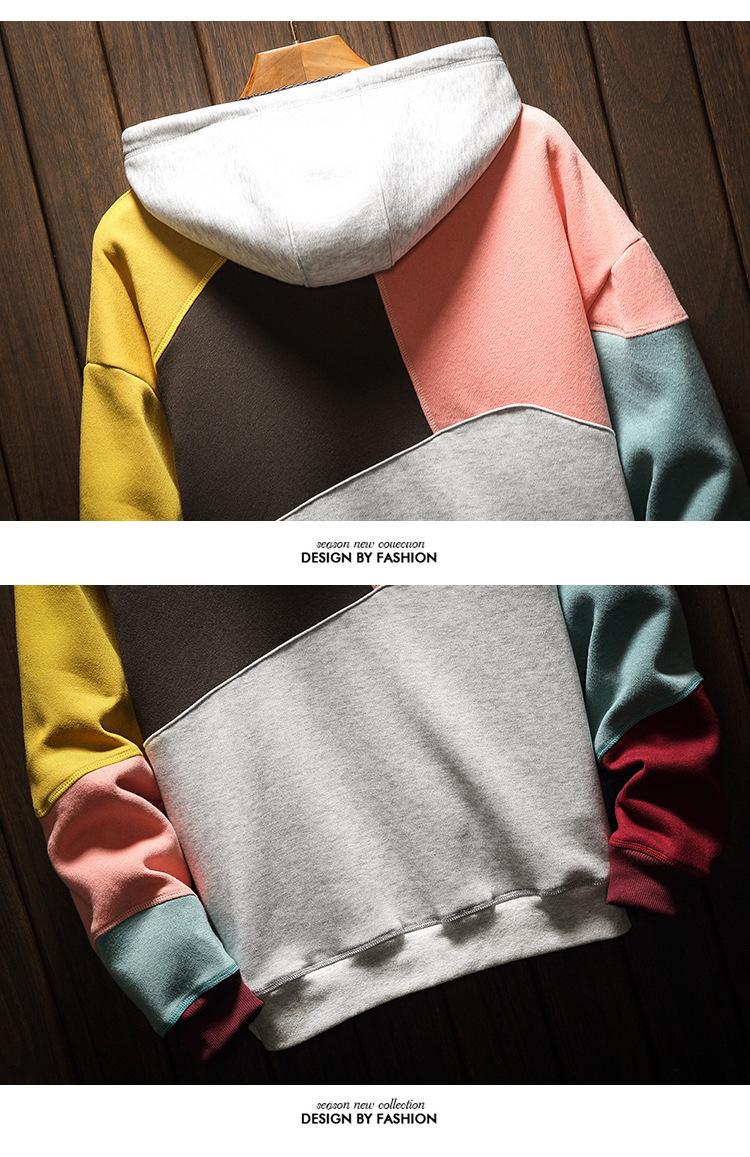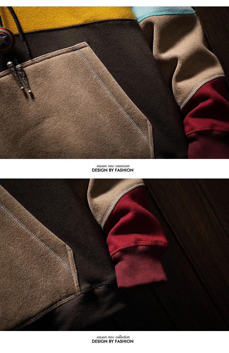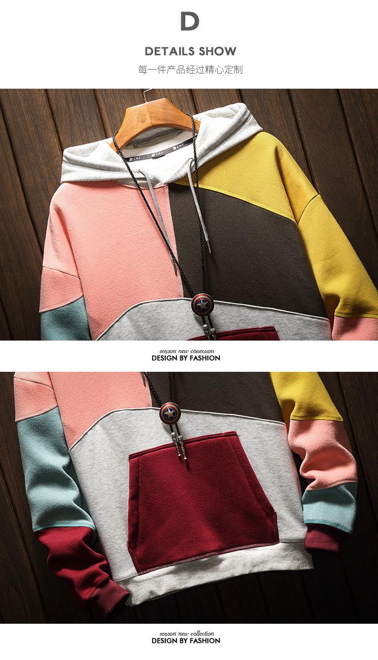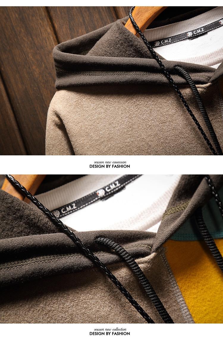 Outono e inverno dos homens camisola com capuz moda dos homens cor combinando com lã forrado camisola com capuz jaqueta juventude casual casal top