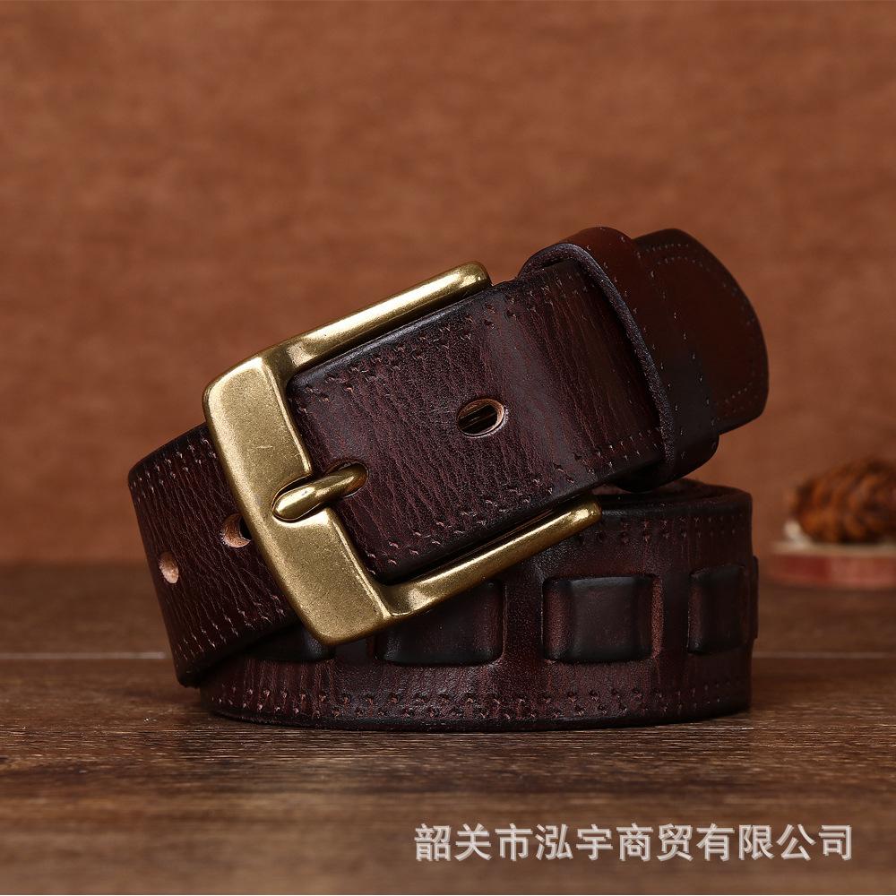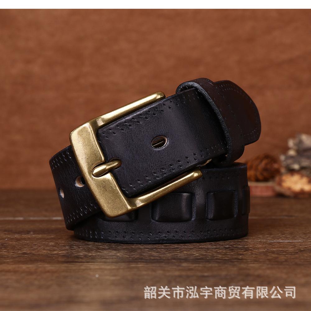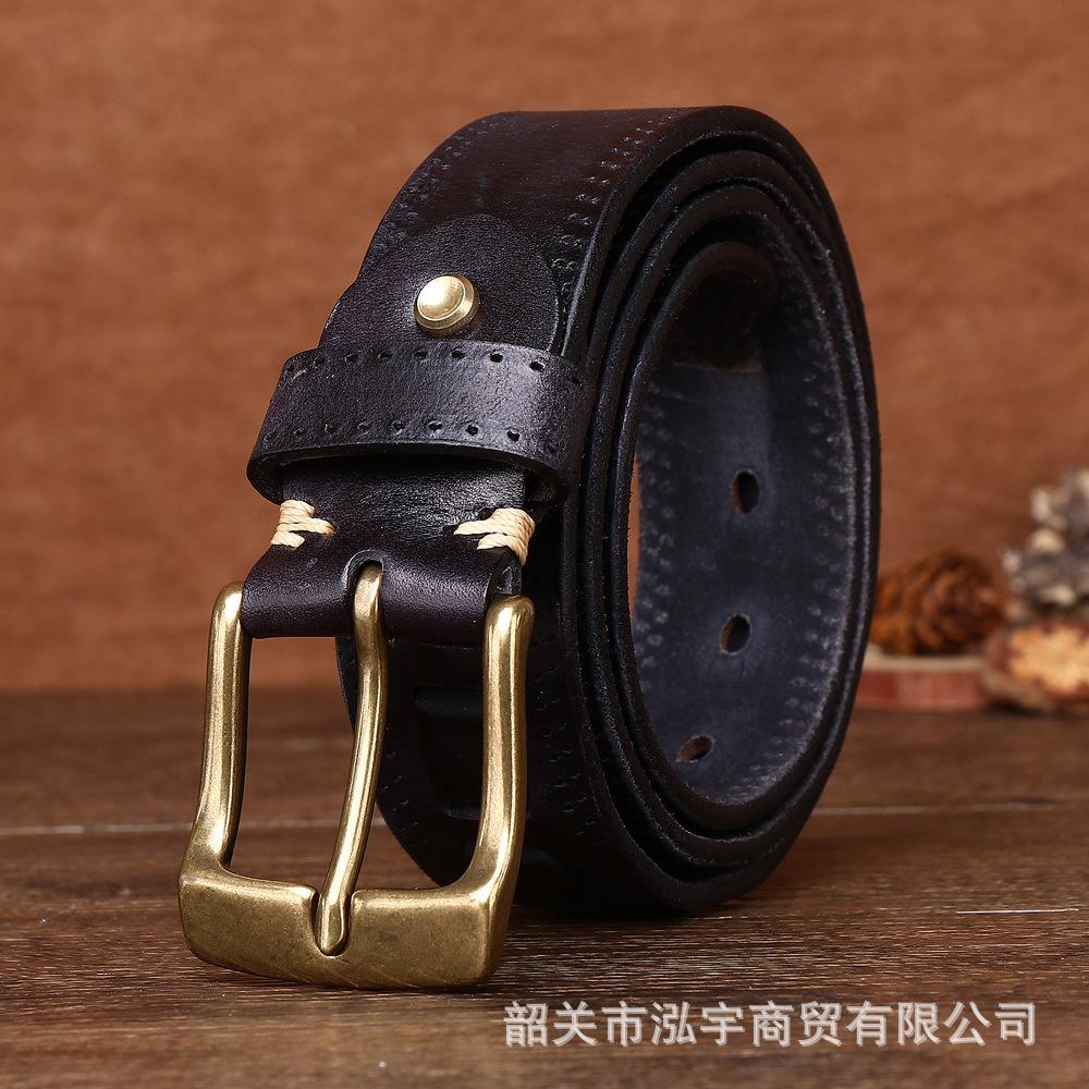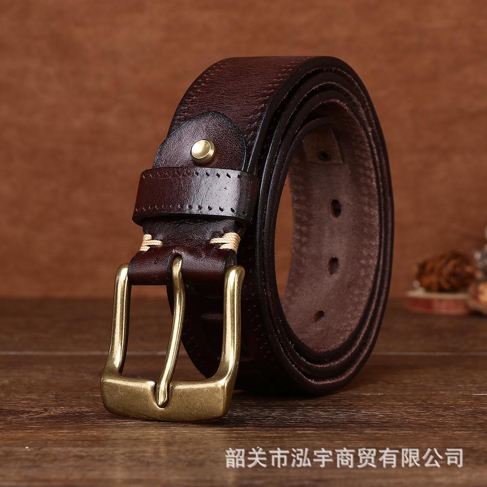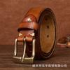 Cinto Masculino de Couro Genuíno 3,8cm Primeira Camada Couro Bovino Fivela de Cobre Personalizado Tecido Casual Versátil Cinto Produto Mais Vendido Transfronteiriço