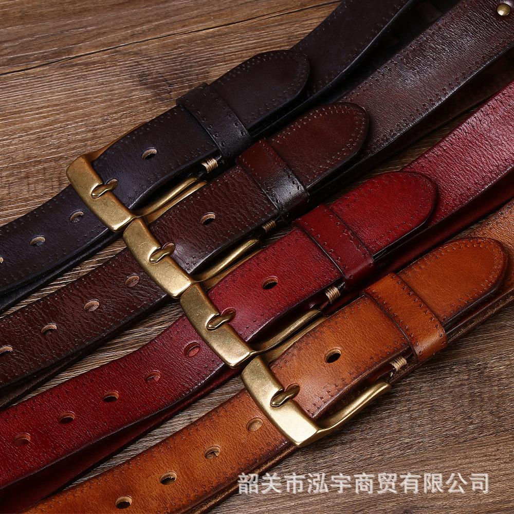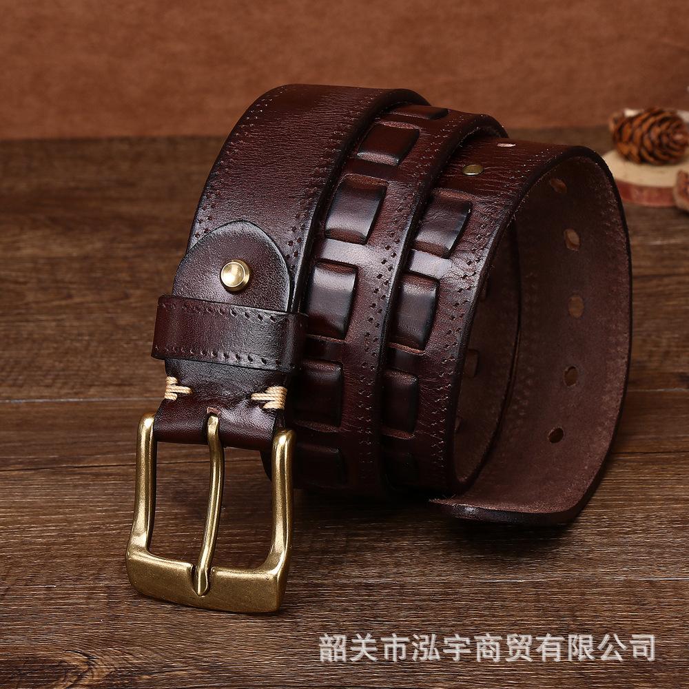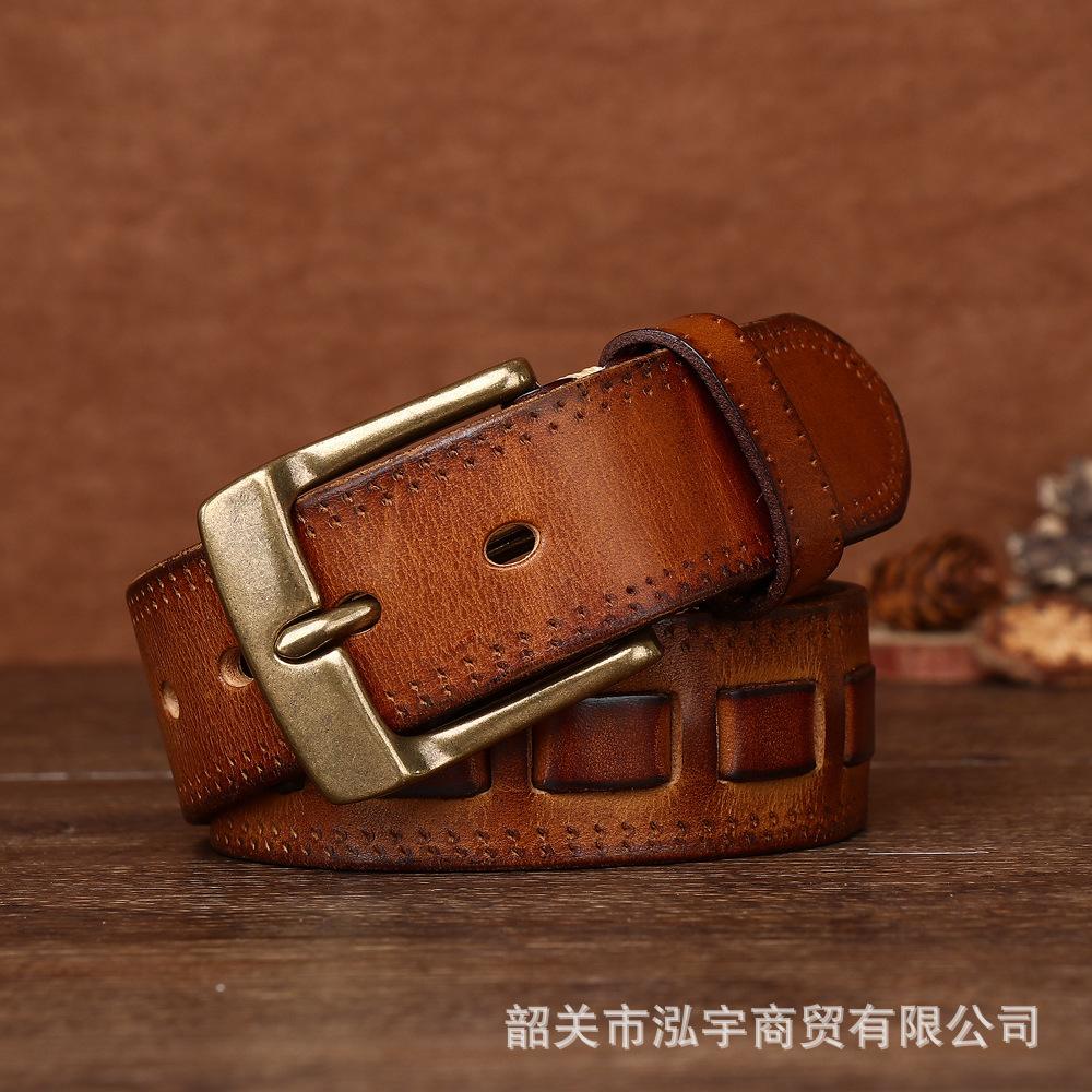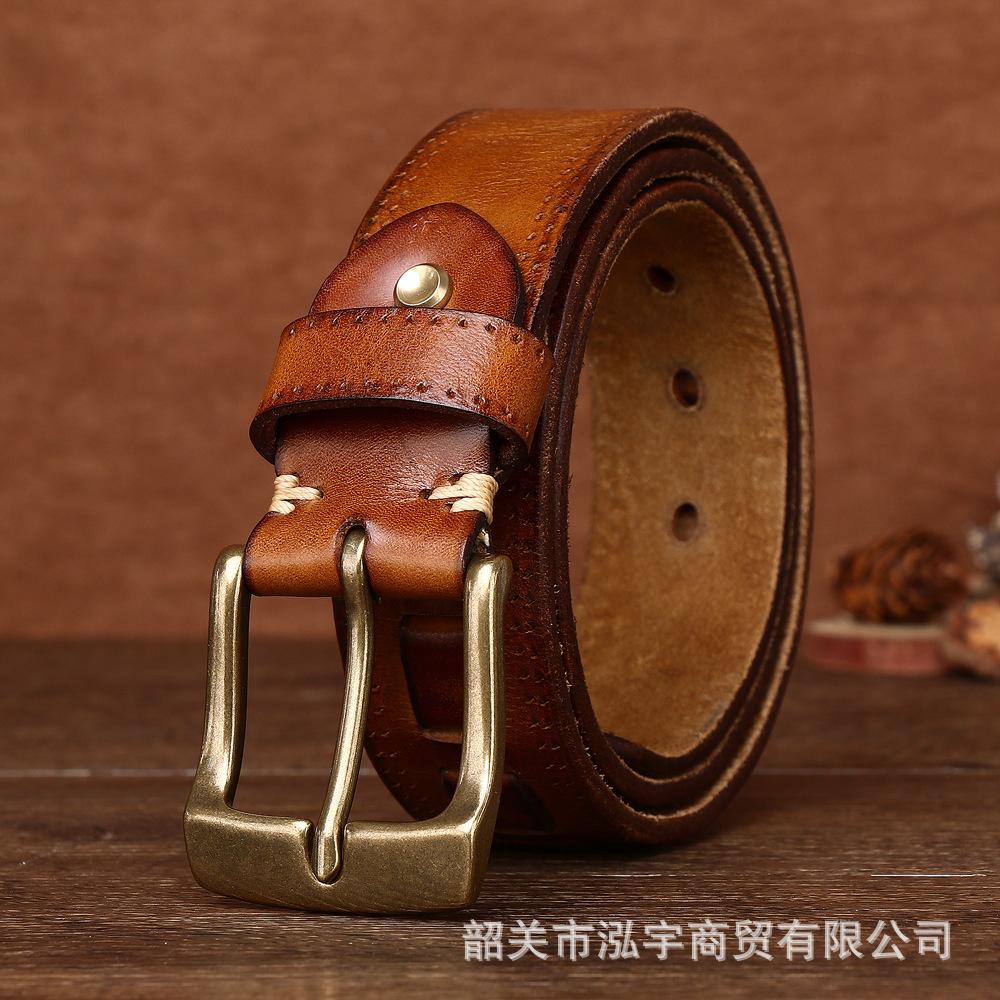 Cinto Masculino de Couro Genuíno 3,8cm Primeira Camada Couro Bovino Fivela de Cobre Personalizado Tecido Casual Versátil Cinto Produto Mais Vendido Transfronteiriço