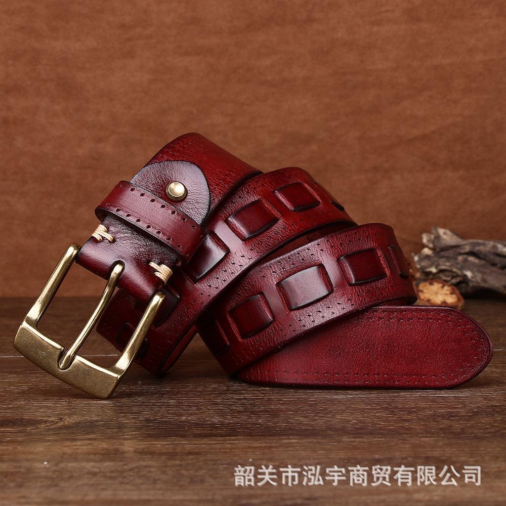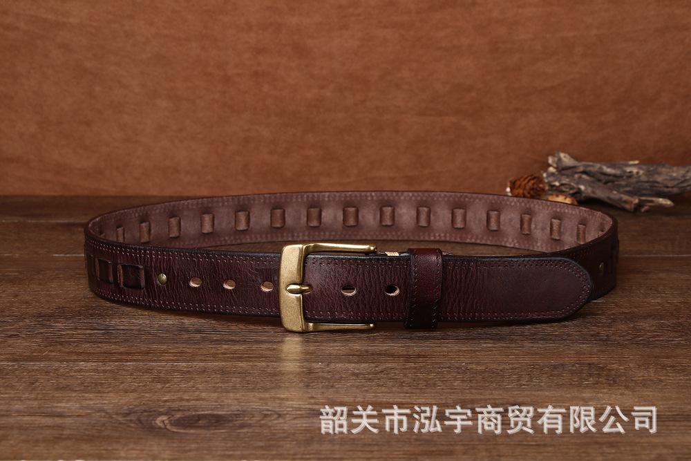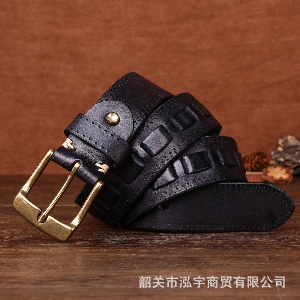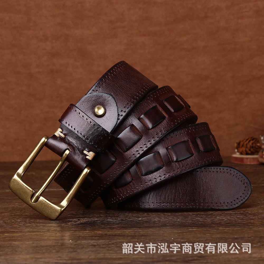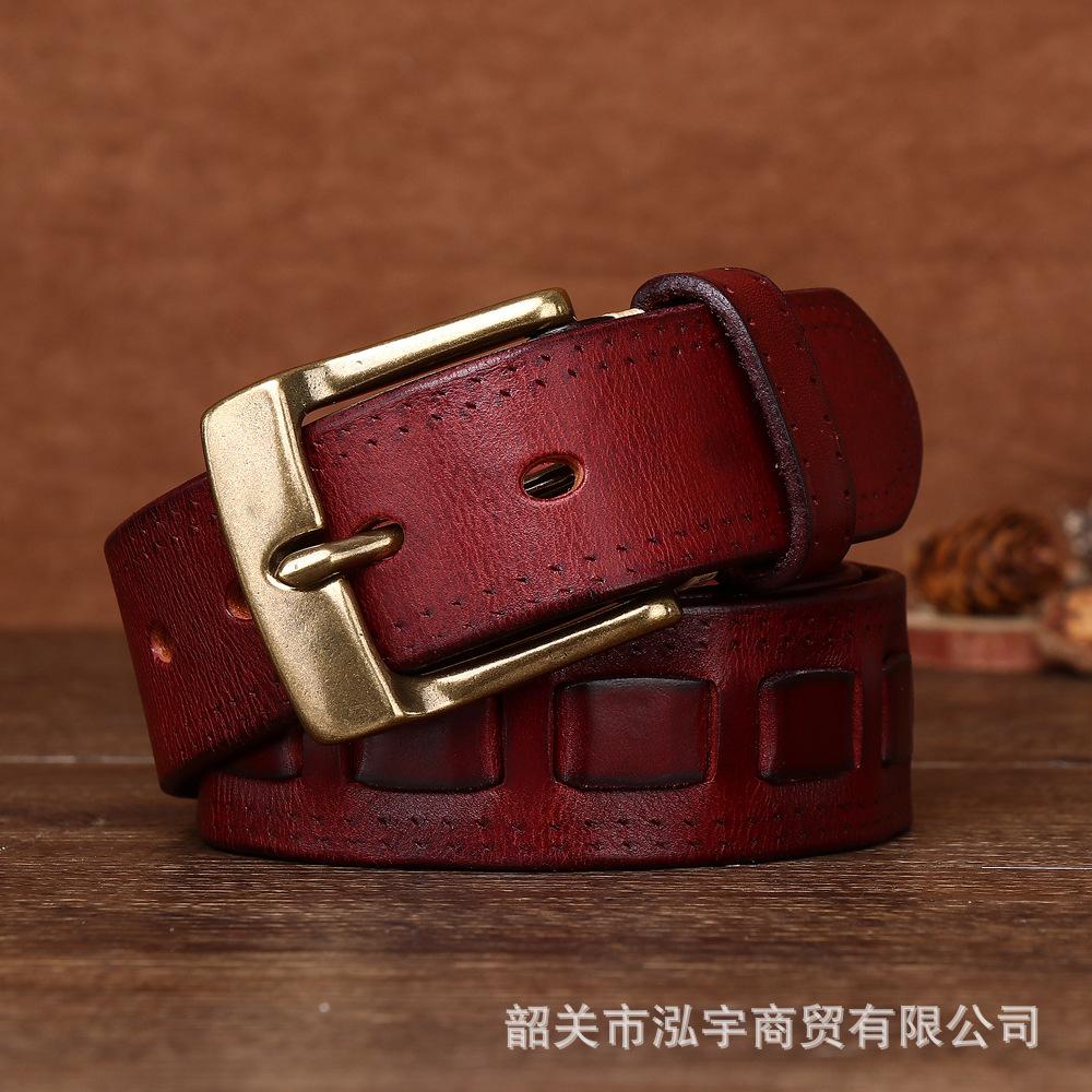 Cinto Masculino de Couro Genuíno 3,8cm Primeira Camada Couro Bovino Fivela de Cobre Personalizado Tecido Casual Versátil Cinto Produto Mais Vendido Transfronteiriço