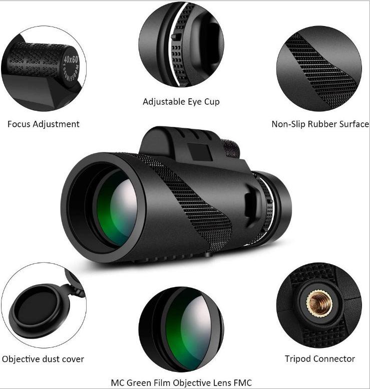 Telescópio Monocular 80X100 Modelo 40X60 Alta Ampliação Visão Noturna em Baixa Luz Fotografia com Celular ao Ar Livre Fabricante Em Estoque Grande Angular