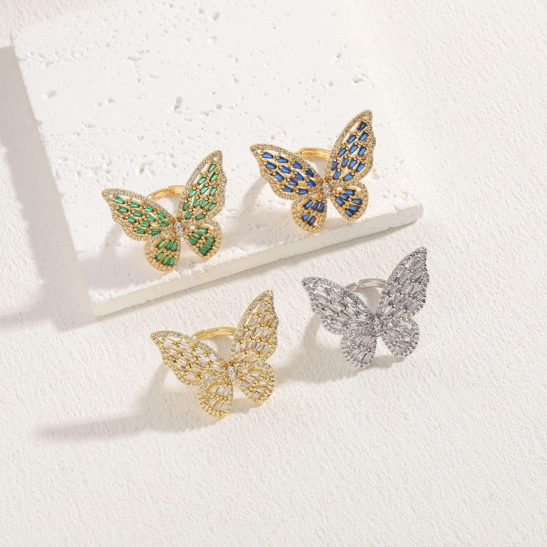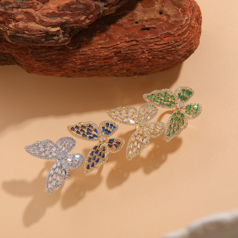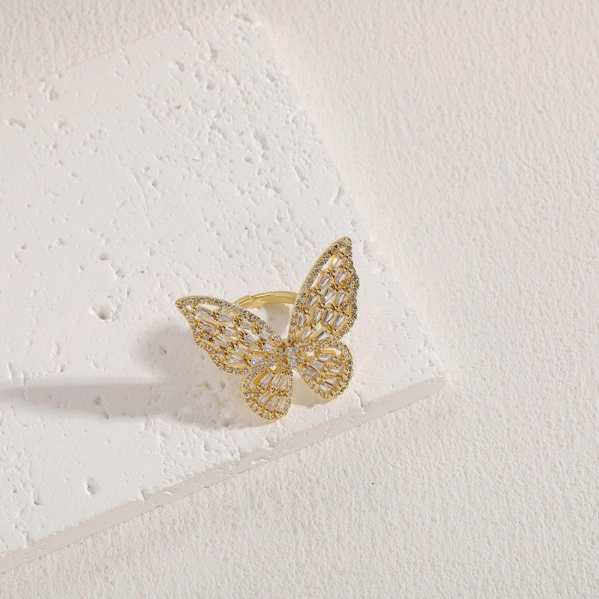 [Nome do produto] Anel de luxo de zircônia borboleta de venda internacional