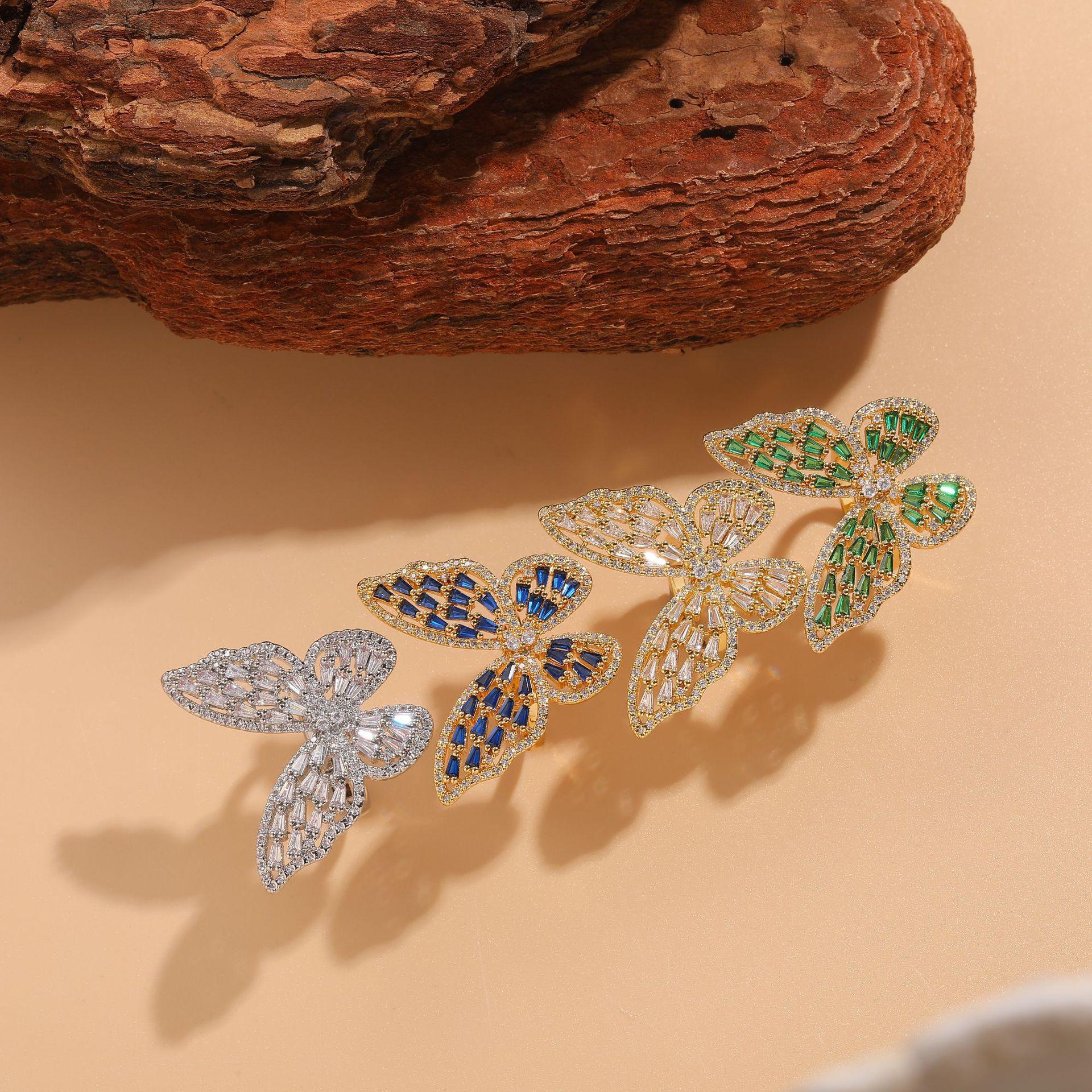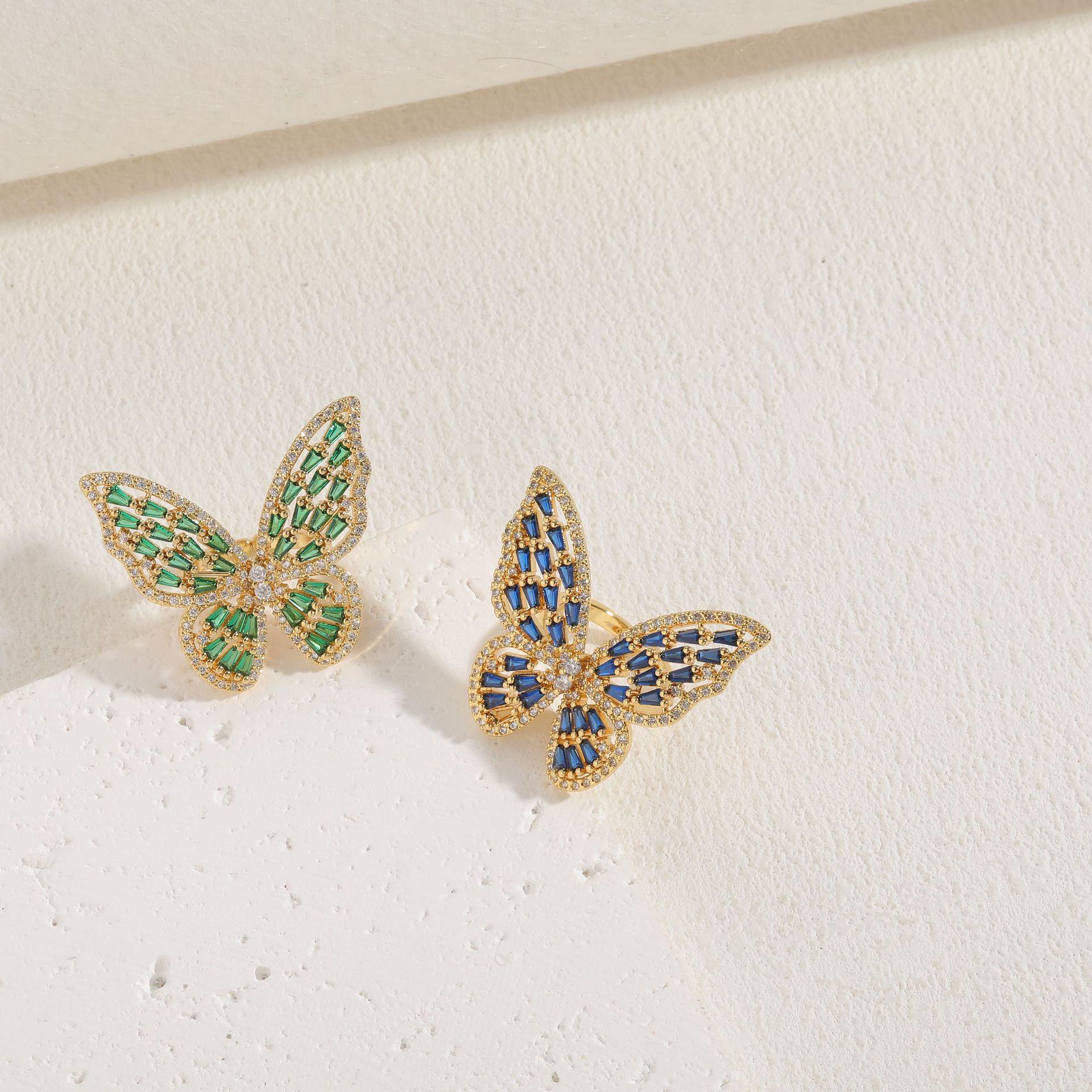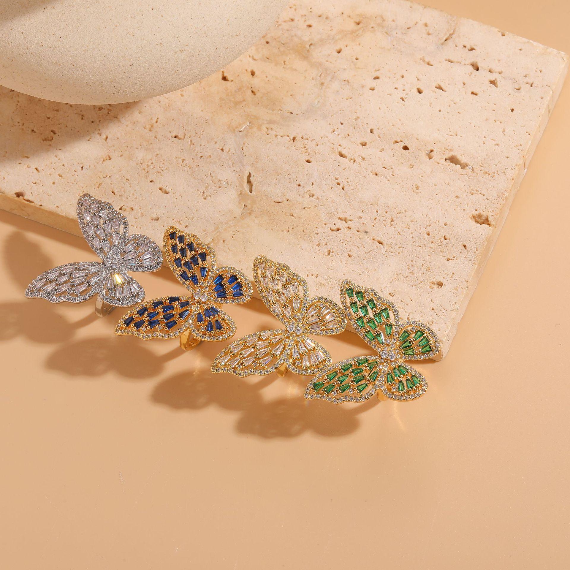 [Nome do produto] Anel de luxo de zircônia borboleta de venda internacional
