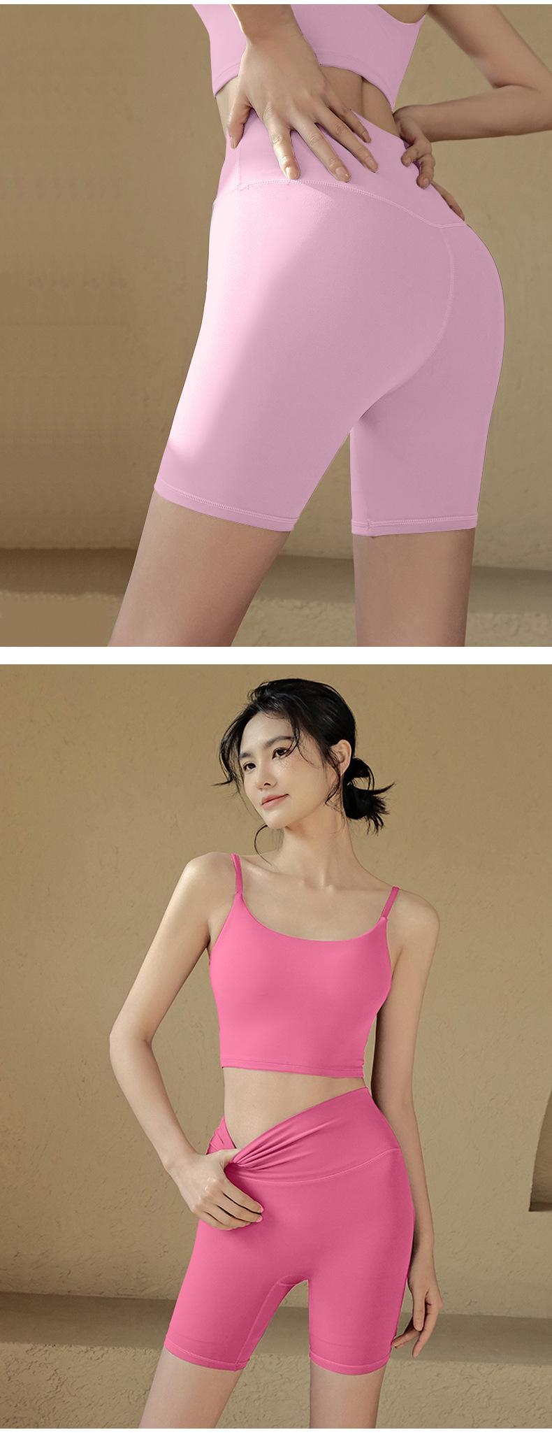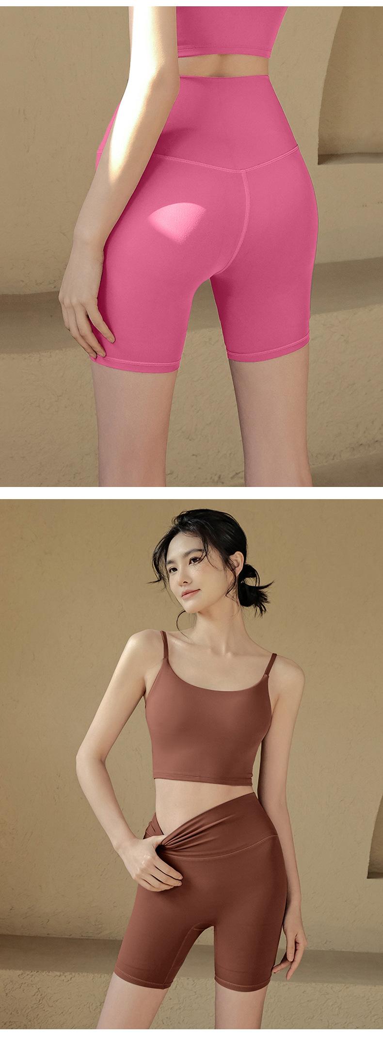 Shorts de Yoga de Cintura Alta com Efeito Levanta Bumbum, Cor Sólida Nude, para Mulheres, Verão, Fitness, Corrida, Roupas de Yoga, Ciclismo, Legging Esportiva Três Quartos