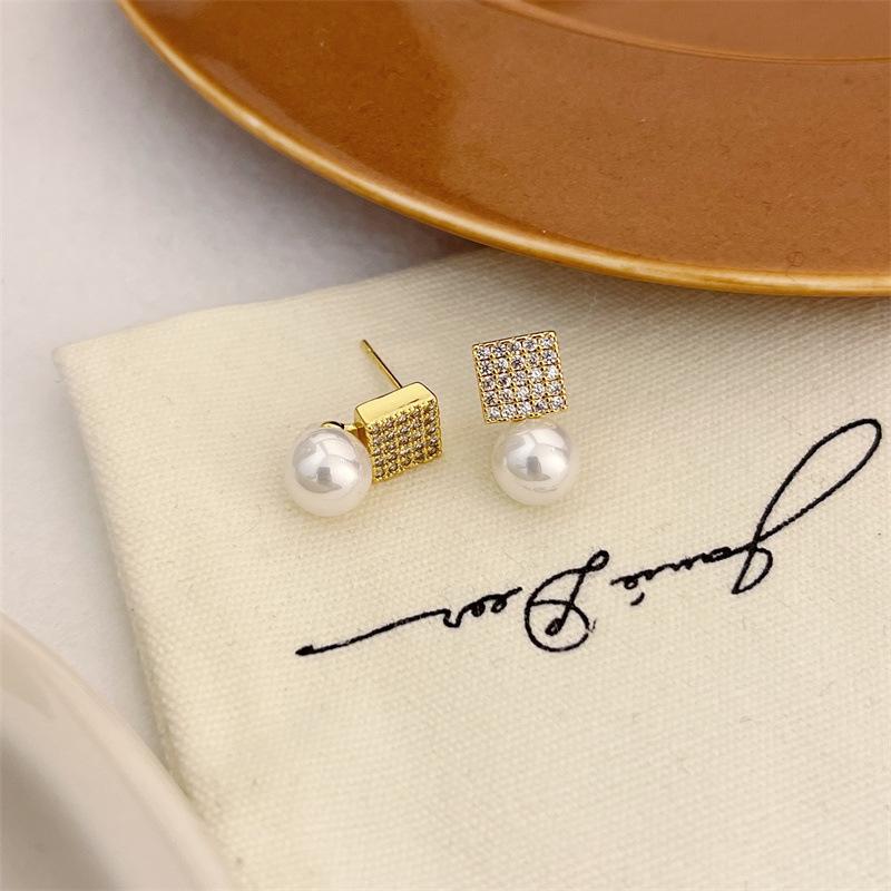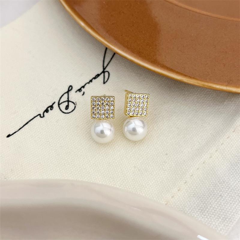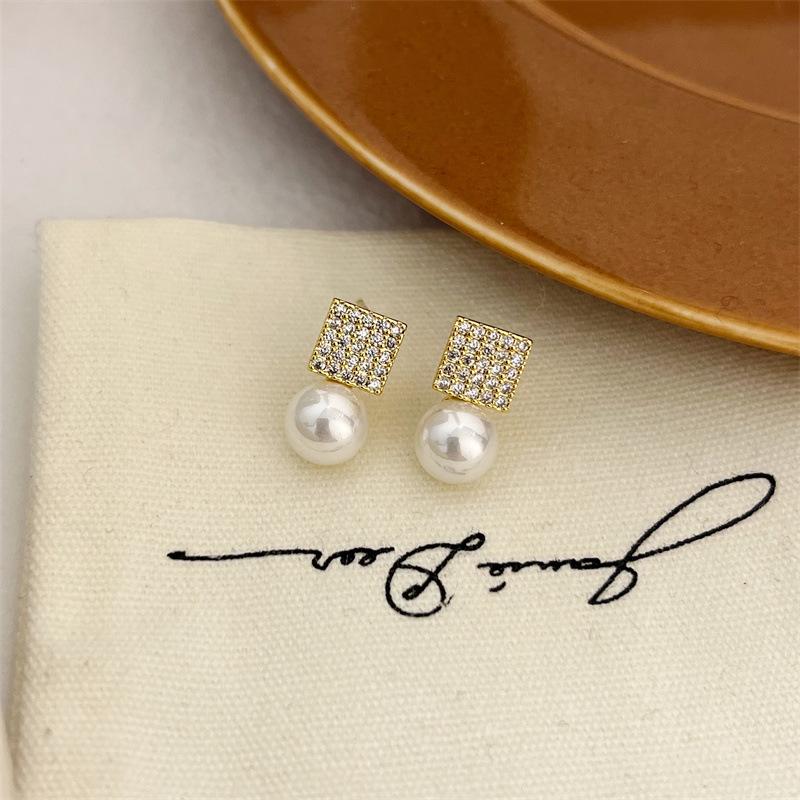 Brincos de pérolas de diamante completo requintado moda elegante para todos os jogos Design Sense Pearl Brincos quadrados micro brincos geométricos