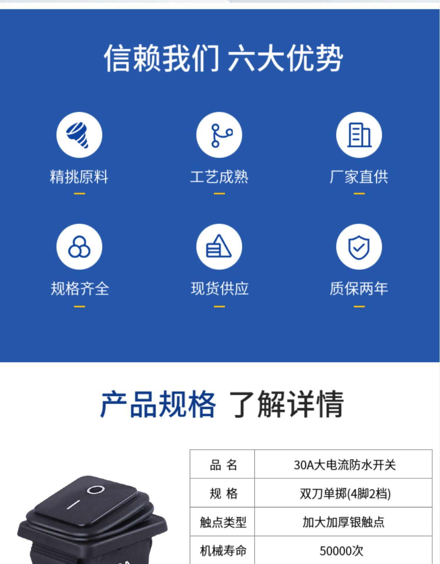 Interruptor impermeável atual alto aberto superior do barco 30A com luz KCD2 Boat Rocker power switch 4 pés 250V
